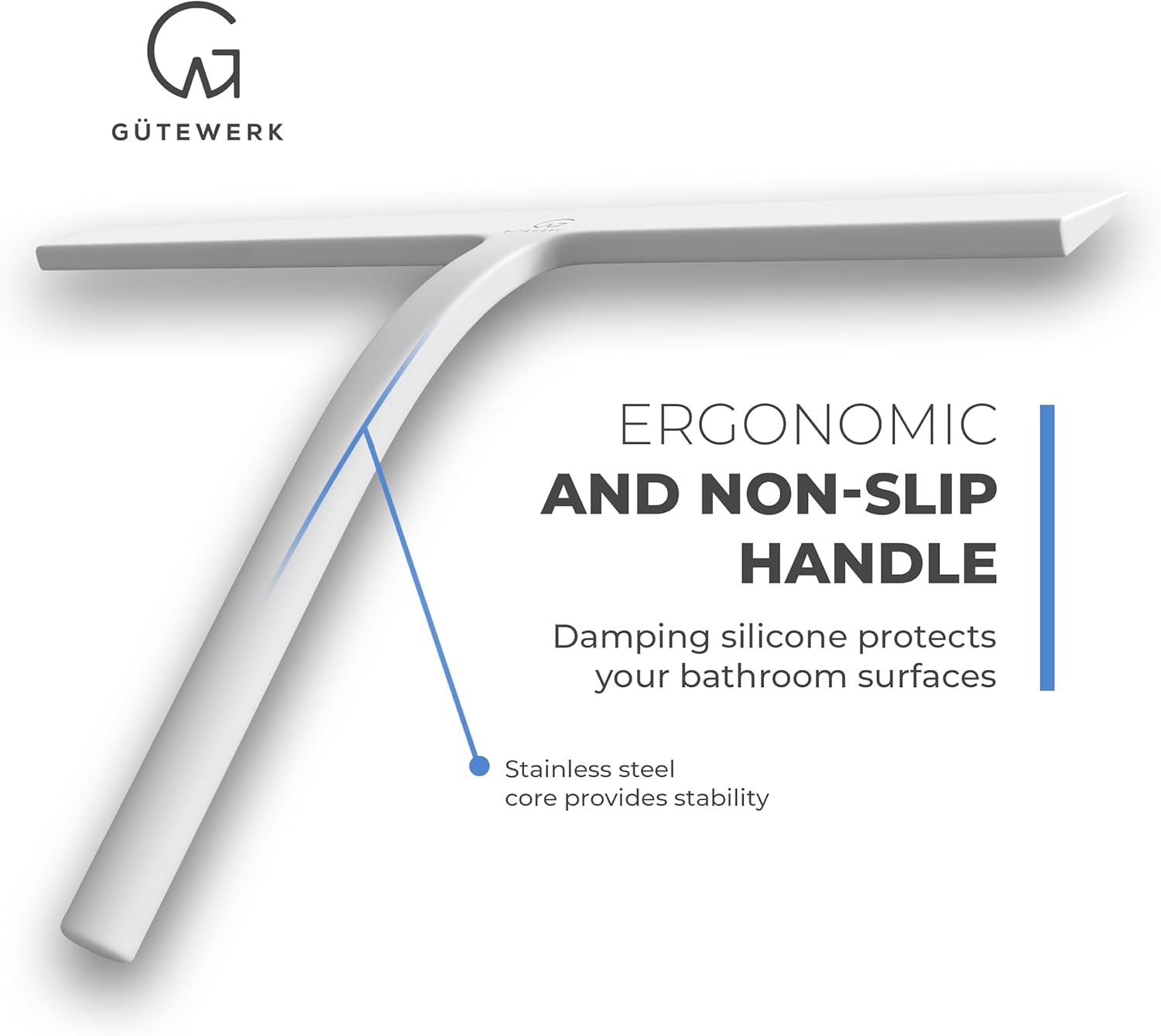 GÜTEWERK Shower Squeegee for Glass Doors, Silicone Window Squeegee, Bathroom and Glass Cleaning - White - 15 Inch