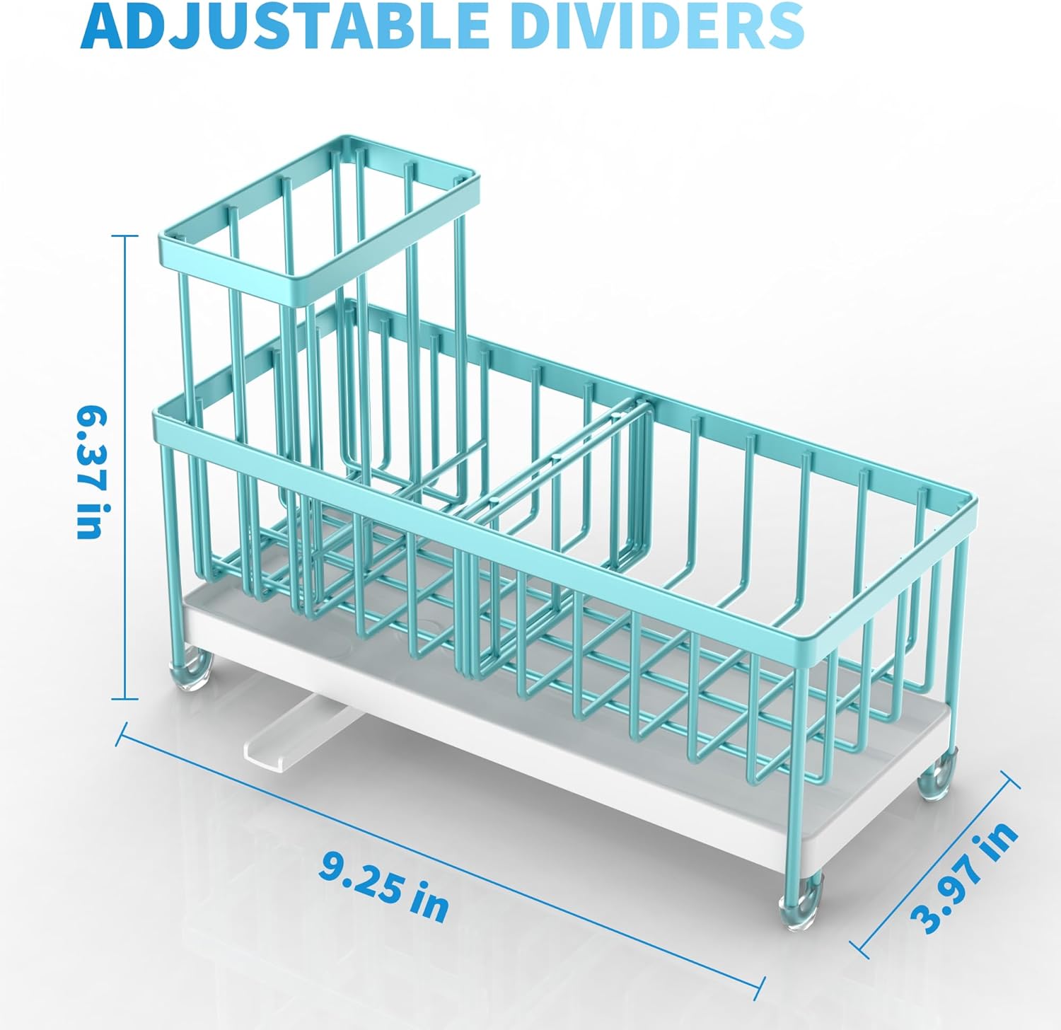 Cisily Turquoise Sponge Holder for Kitchen Sink, Sink Caddy Organizer with High Brush Holder, Kitchen Countertop Organizers and Storage Essentials, Rustproof 304 Stainless Steel, Soap Dispenser