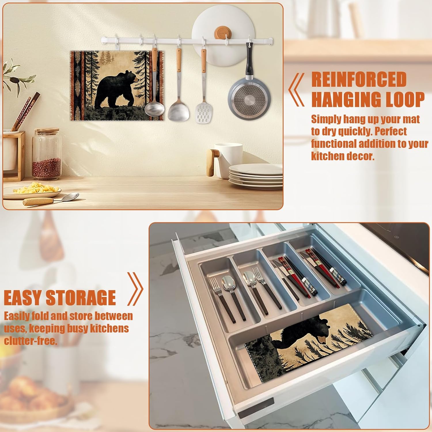 - 【Easy to Clean】The utensil drying mat can be cleaned by hand or machine to remove stains, the kitchen utensil drying mat to dry quickly without a machine. HD printed suede has excellent color lock, does not fade and can be reused many times.