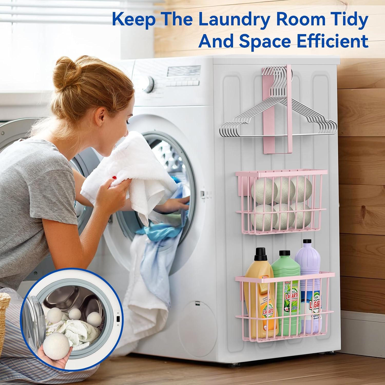 - Durable and Simple: The back is made of strong magnets and high-quality glue, and the magnetic strips will not fall off easily. The drying ball holder and hanger holder are made of high-quality metal materials with smooth paint, durable and rust-proof. Add a pleasant look to your laundry room and say goodbye to monotony.