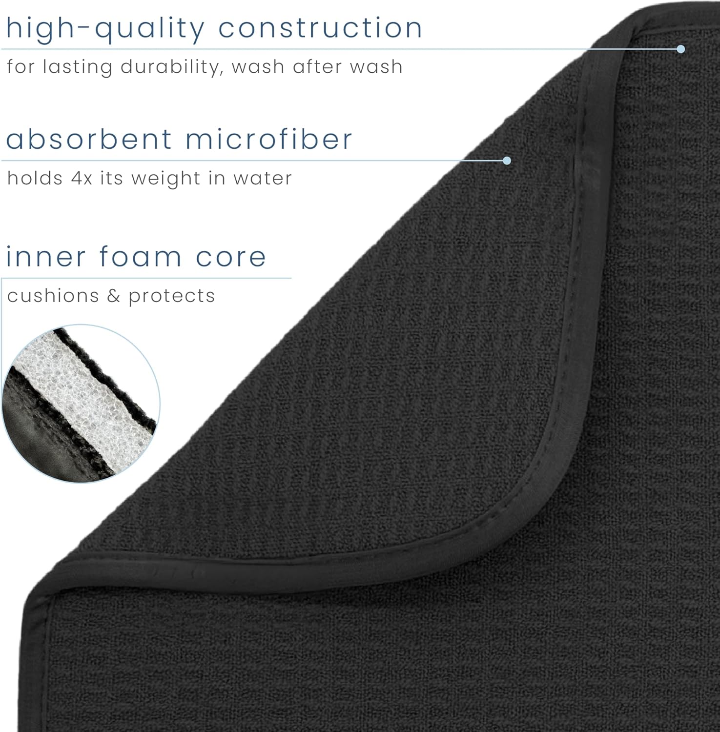 S&T INC. Dish Drying Mat Jumbo, 18” x 30”, Absorbent Microfiber Kitchen Counter Mat, Dish Drying Pad for Dishes, Utensils, Pots and Pans, Jumbo, Black