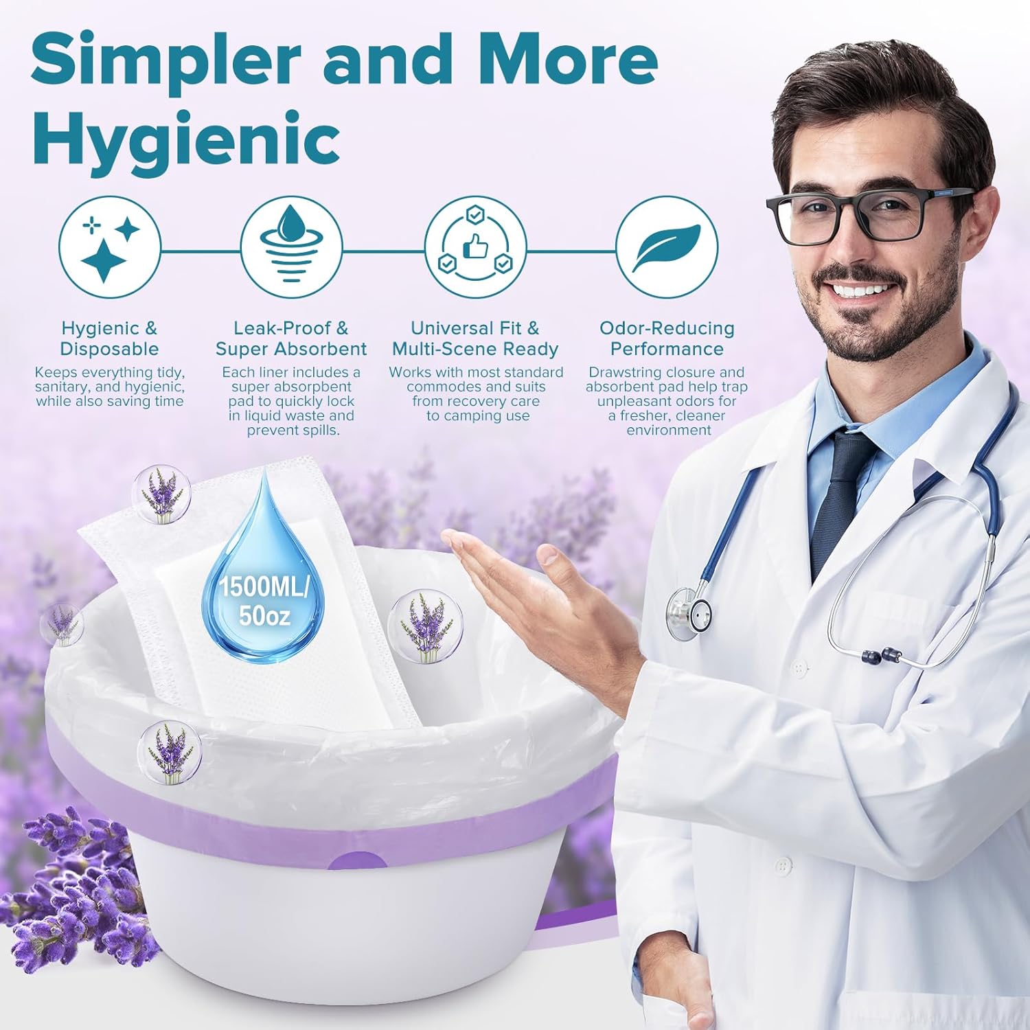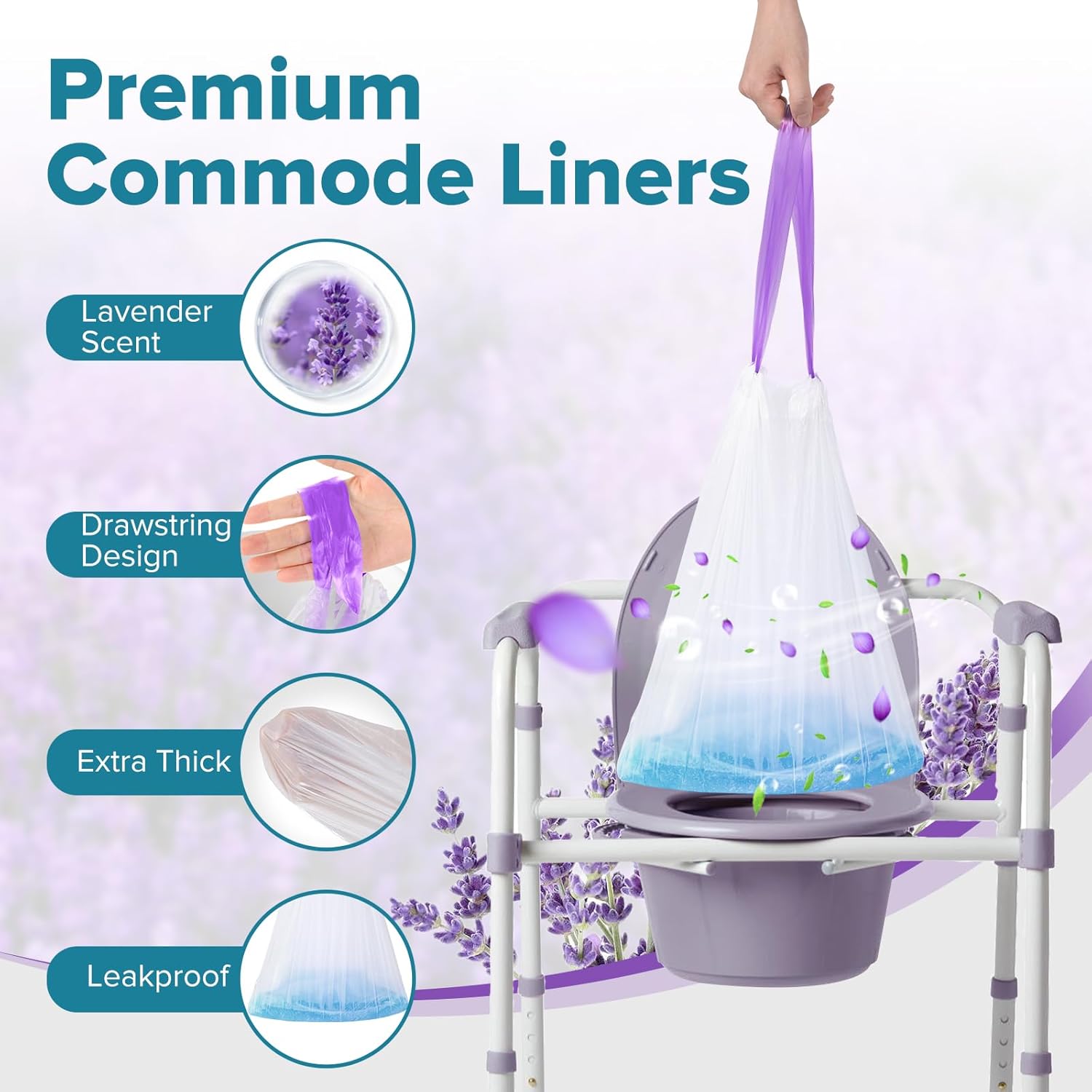 Maliton 120 Commode Liners with Absorbent Pads, Portable Toilet Bags for Bedside Commode Toilet, Lavender Scent Leakproof Bags Fit Most Commode Chairs and Potties (120 Potty Bags+120 Potty Liners)