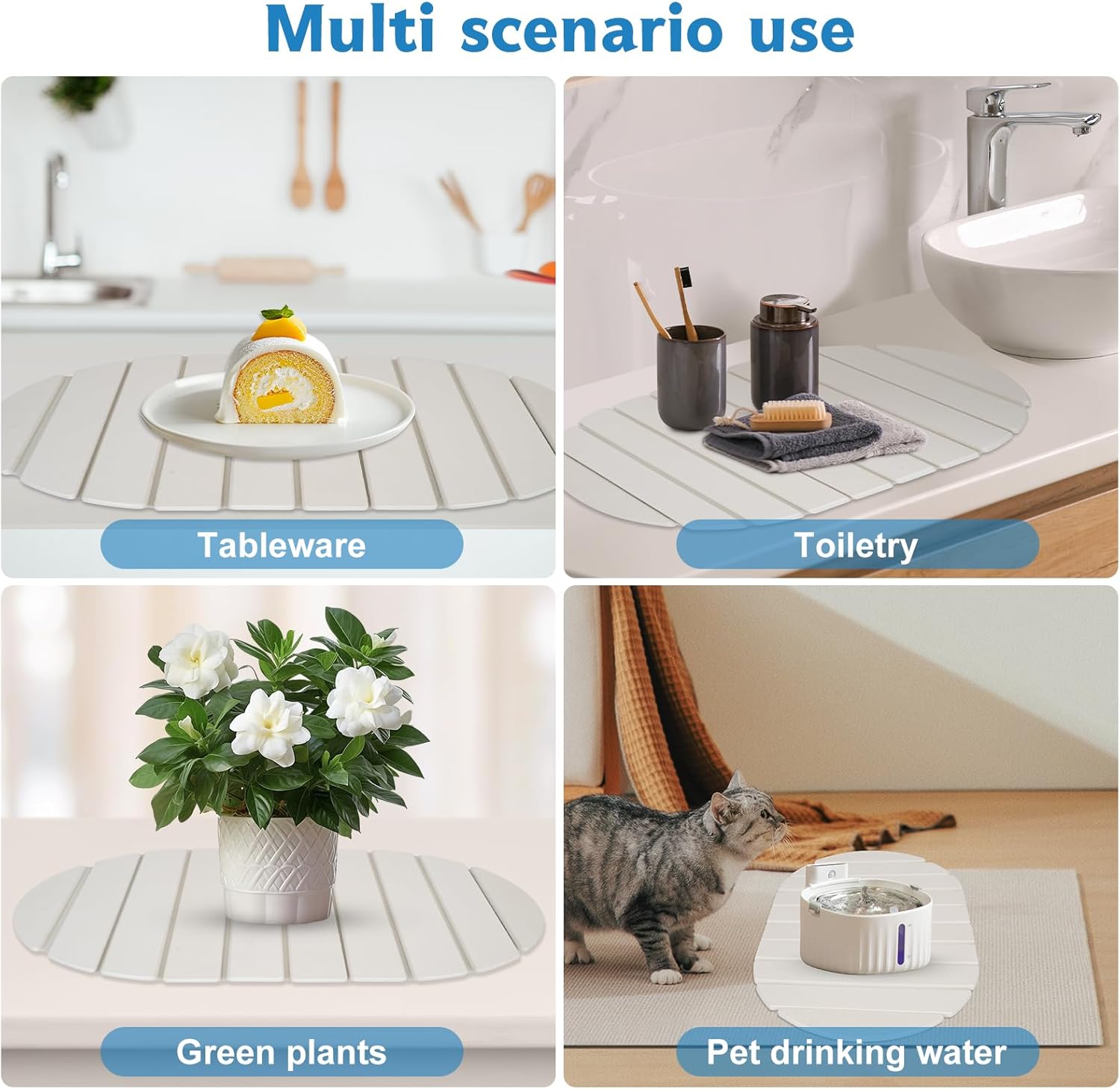 - 【Ultra Absorbent & Quick Drying】: Made from natural diatomaceous earth, it absorbs water instantly and dries quickly, keeping your countertops dry and free from dampness or odors. Perfect for maintaining a clean kitchen or bathroom.