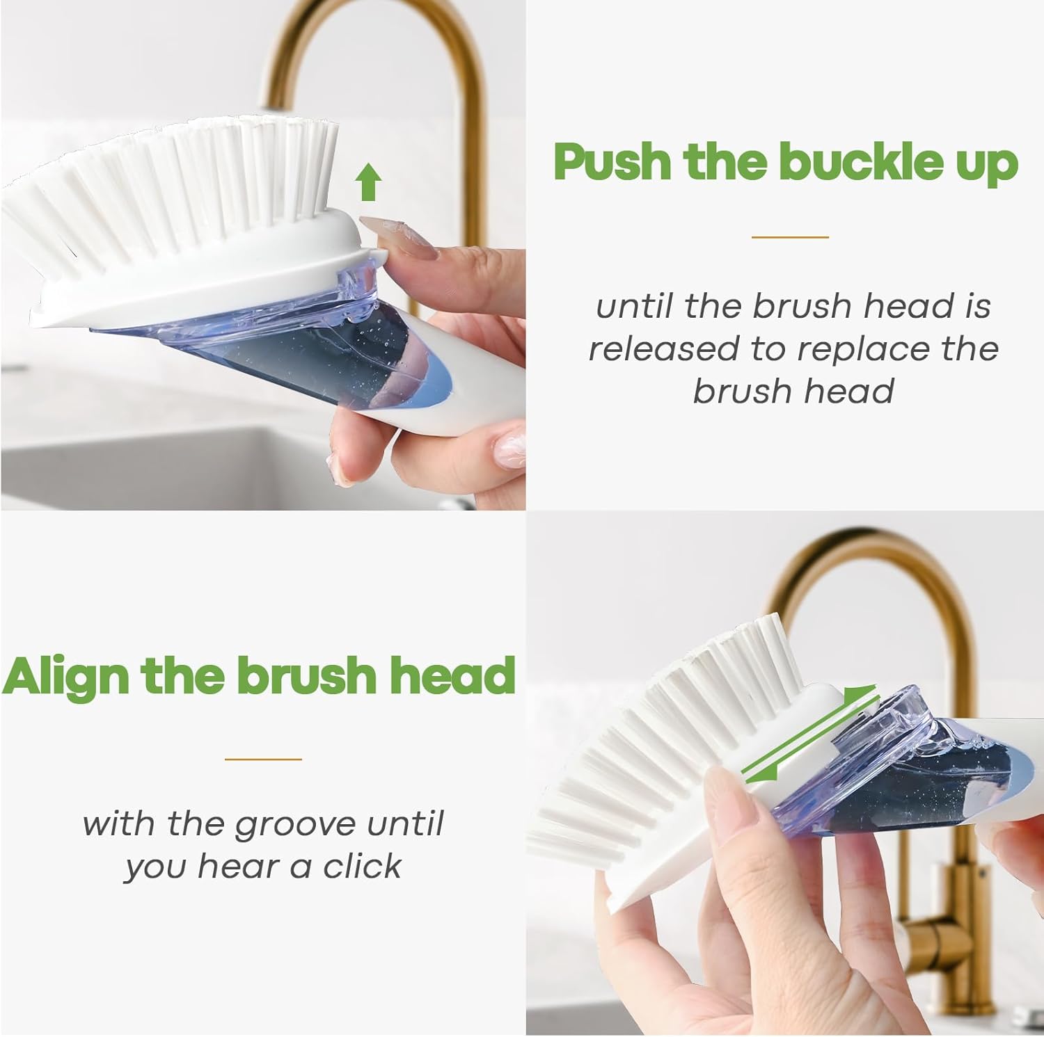 - 2 * Replacement Brush Heads: They are made of nylon bristles, gentle and durable enough to be used for non-stick cookware. The dish brush refill head can be easily replaced with new brush head. (Please refer to ASIN B0BK4NHM43, B0DHRPRCXW to order replacement brush refills)