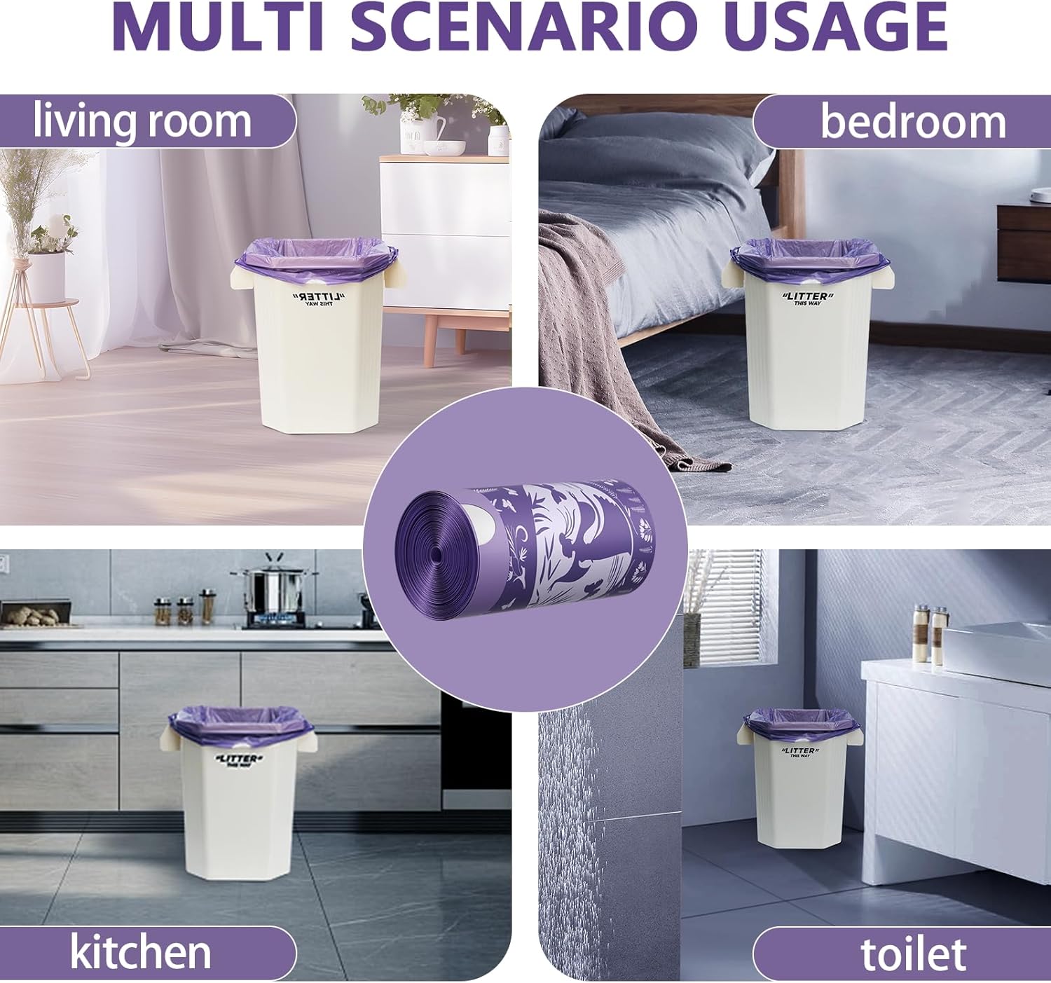 - 【Material and Smell】: All of our small garbage bags are made of HDPE material. This material can make the garbage bag stronger, we also added some lavender fragrance to the 8 gallon garbage bag, so the garbage bag will have a slight smell of lavender which can properly neutralize some of the garbage smell