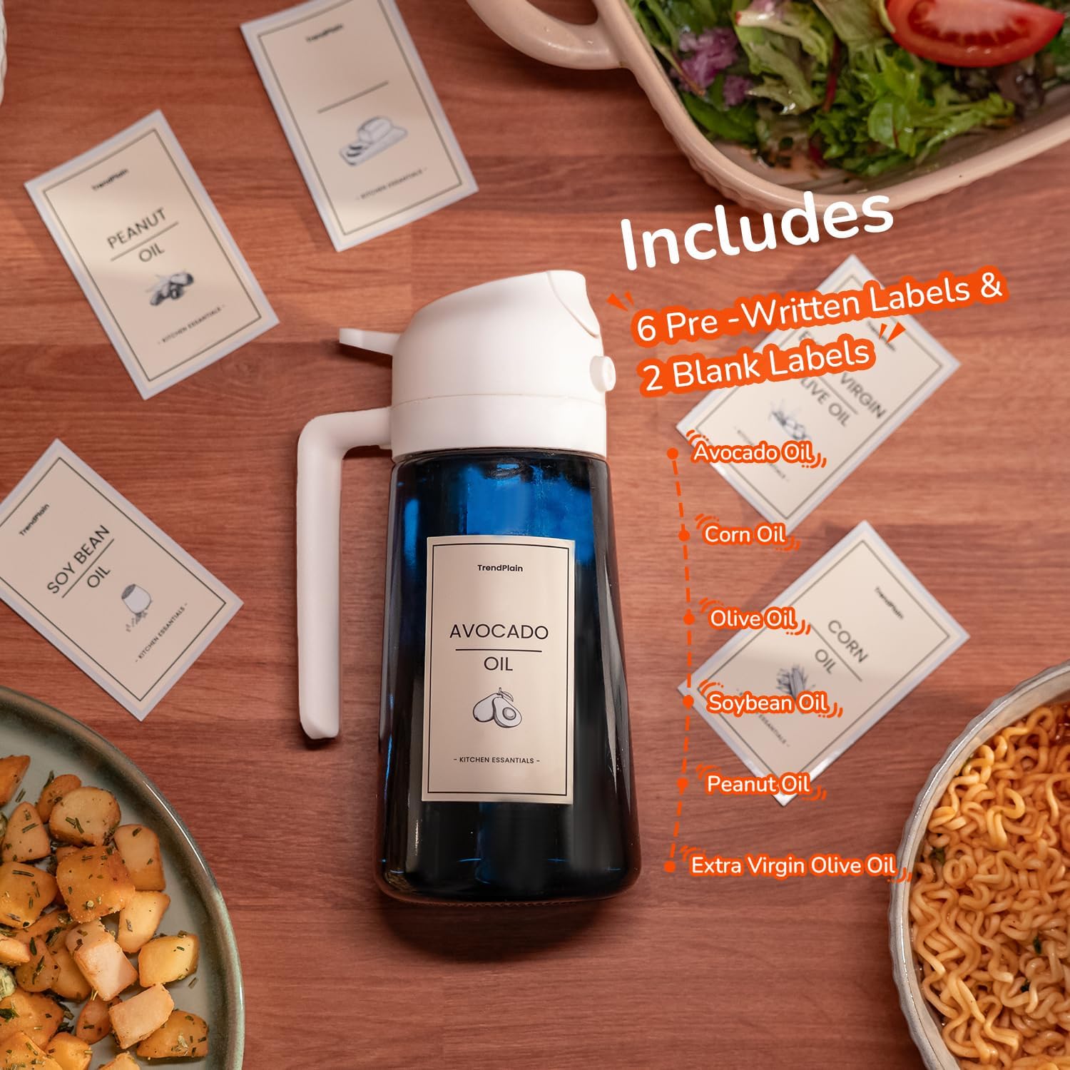 TrendPlain 16oz/470ml Blue Glass Olive Oil Sprayer for Cooking - 2 in 1 Olive Oil Dispenser for Kitchen Gadgets, Air Fryer, Salad, and BBQ - White & Green