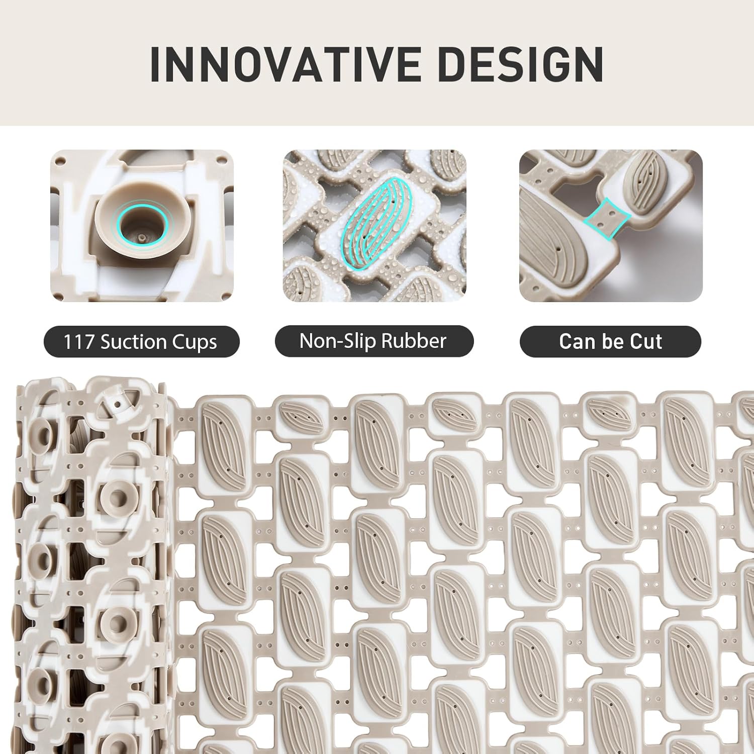 - ✅【Customizable Fit with Easy Trimming】Our shower mat non slip bath mats for shower tub can be easily cut to size for a perfect fit around irregular spaces, edges, or fixtures without compromising functionality
