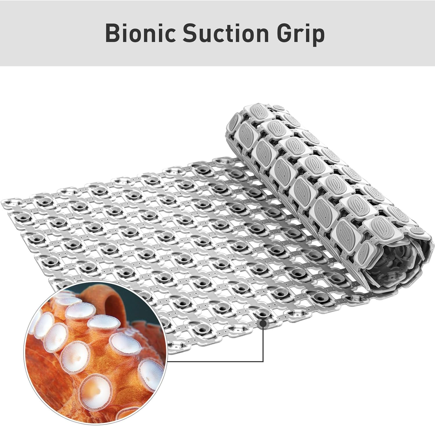Shower Mat Non Slip Bathtub Mat - 36 x 16 Inch Eco-Friendly Soft Bath Mat for Tub Non Slip Shower Mats for Inside Shower with Suction Cups and Drain Holes, Easy to Clean Quick-Drying, Grey