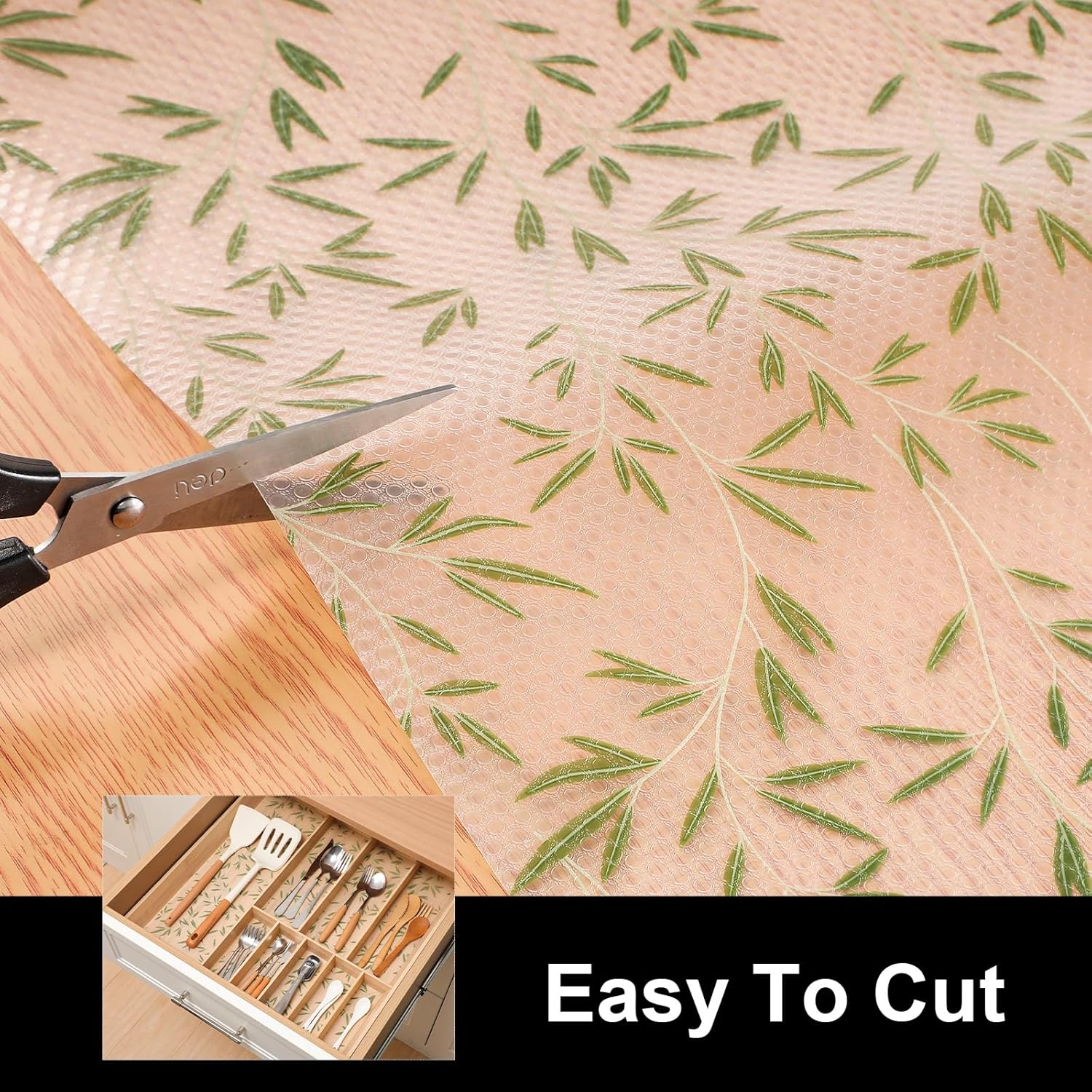 - EASY TO INSTALL AND CUT: The cabinet liners are easy to cut. You can easily trim them into the desired shape with scissors, place them on a drawer or table, and trim off any excess material. Our drawer liners are non-adhesive and easy to remove.
