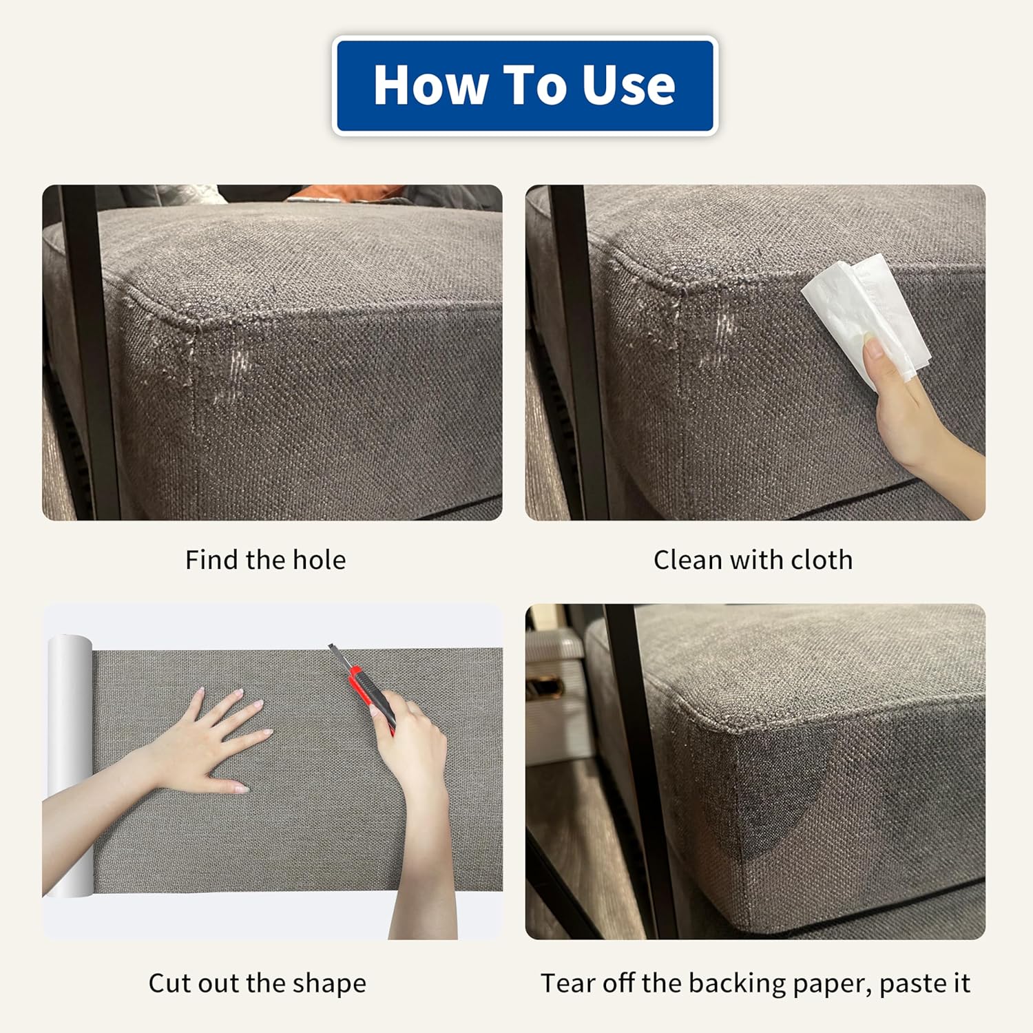- Easy Application: Clean the damaged area, cut to the appropriate size, peel off the backing paper, and stick it to the damaged area. It only takes a few seconds to complete, and the repair effect is natural and tidy. Suitable for repairing linen products such as sofas, curtains, cushions, furniture, interior decorative fabrics, etc.