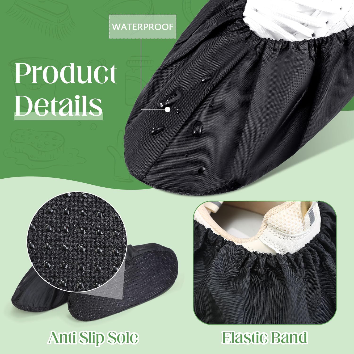 - Easy to Clean and Reusable: the shoe cover is machine washable, and you can also wash it by hand, just use a wet cloth to clean after each wear, reusable for many times; With a rubber band, it's easy to wear and not easy to fall off