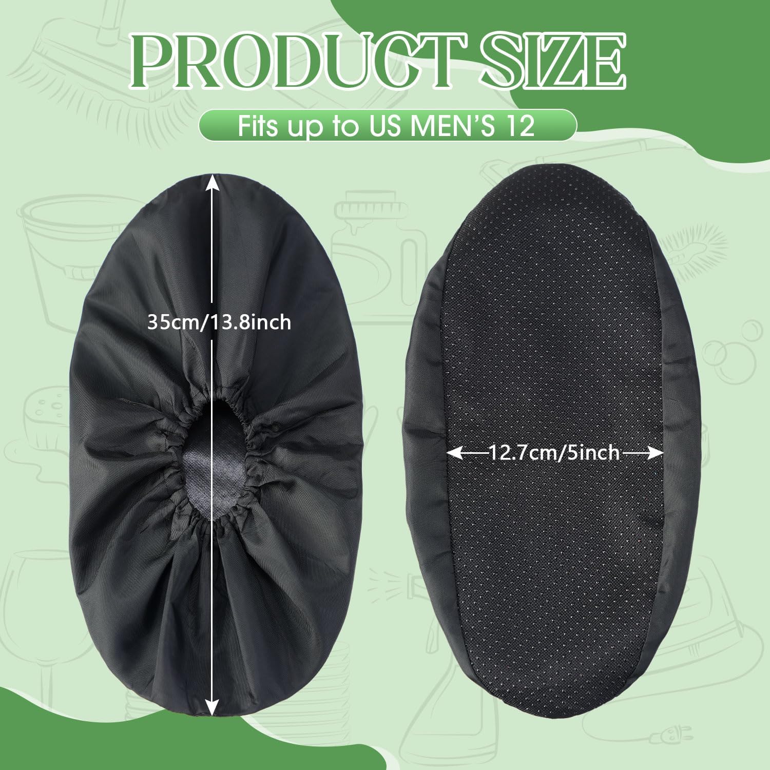 - What You Get: 8 pairs of reusable boot shoe covers in black, enough quantity to use and replace when raining or doing housework; Each cover's sole length is approx. 13.78 inches/ 35 cm, which fits up to US men's 12 ; Manual measurement, please confirm the size before ordering