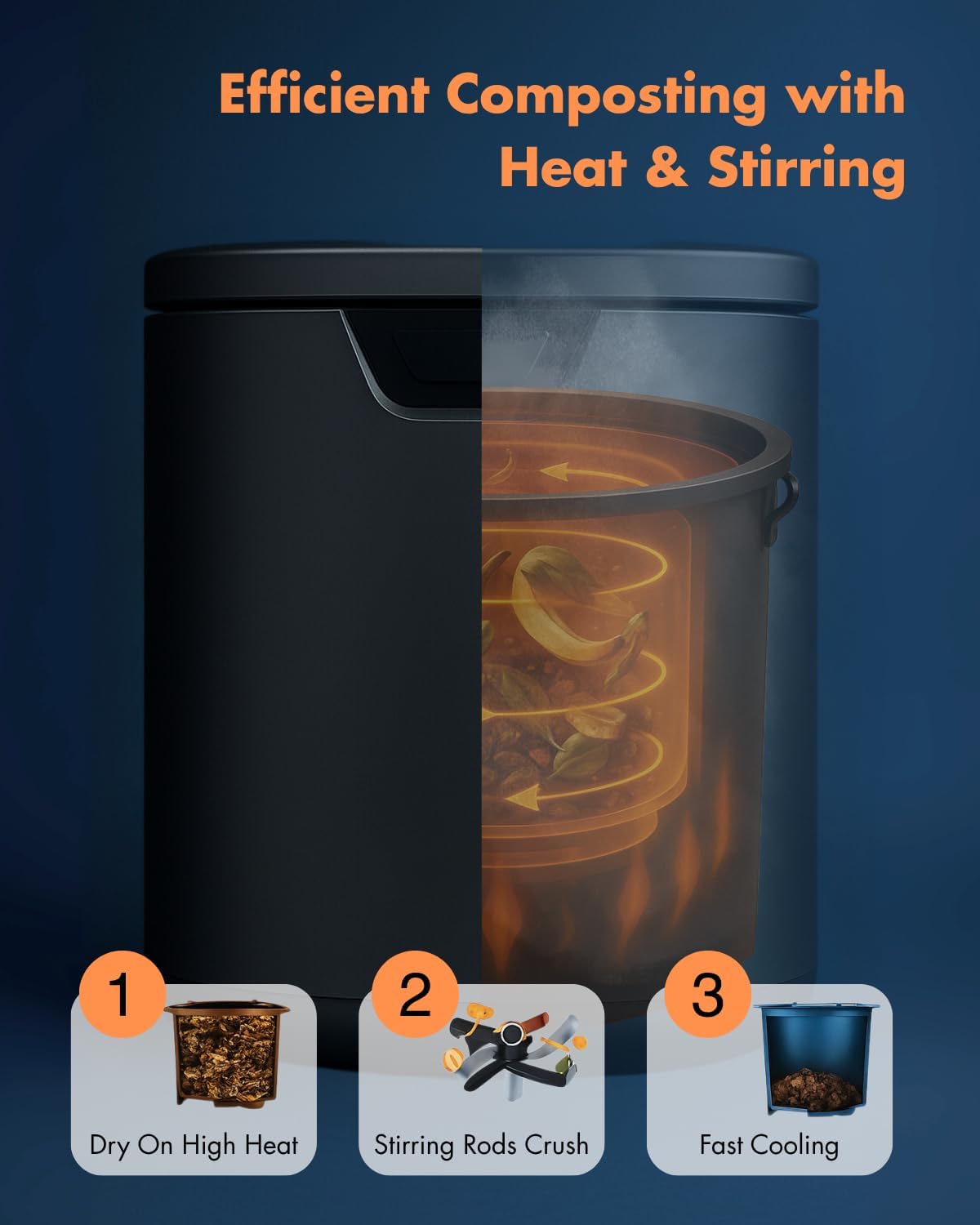 - Compact Design for Easy Use: With a 4L capacity, this sleek and compact kitchen composter fits neatly on your countertop. Perfect for families, it saves space without compromising on performance—ideal for modern kitchens!