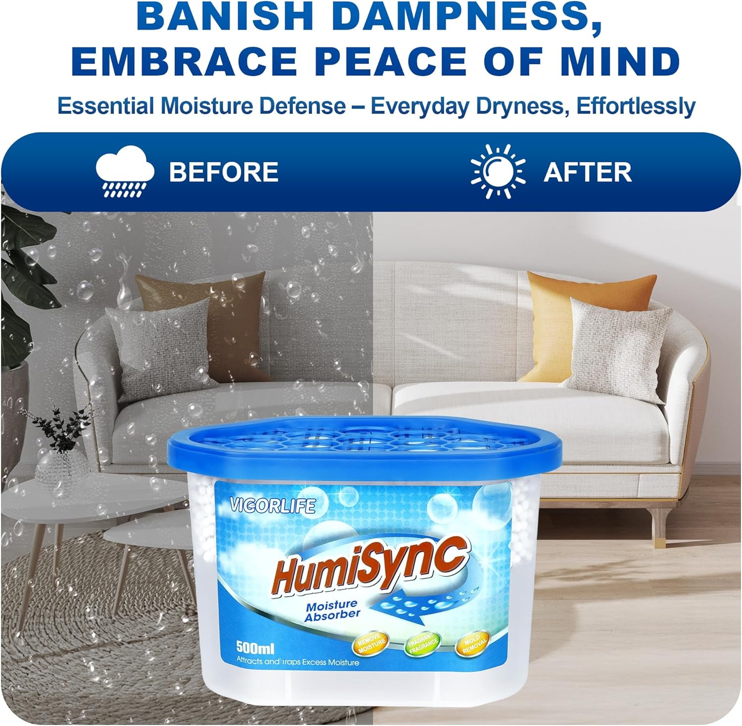 - High-efficiency dehumidification: Dehumidification boxes are a convenient and effective way to solve the problem of damp air diffusion in homes, offices or storage Spaces. The dehumidifier is odorless. The large-capacity moisture-absorbing box can absorb excess moisture and create fresher air.