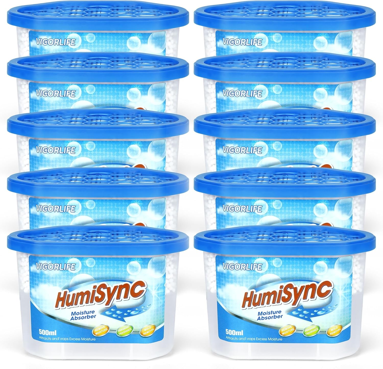 Moisture Absorbers 10 Pack, 16.9oz., Portable Humidity Absorber Boxes for Bathroom, Closet, Kitchen, Dehumidifiers, Attract and Trap Excess Moisture, Convenient and Effective, Blue