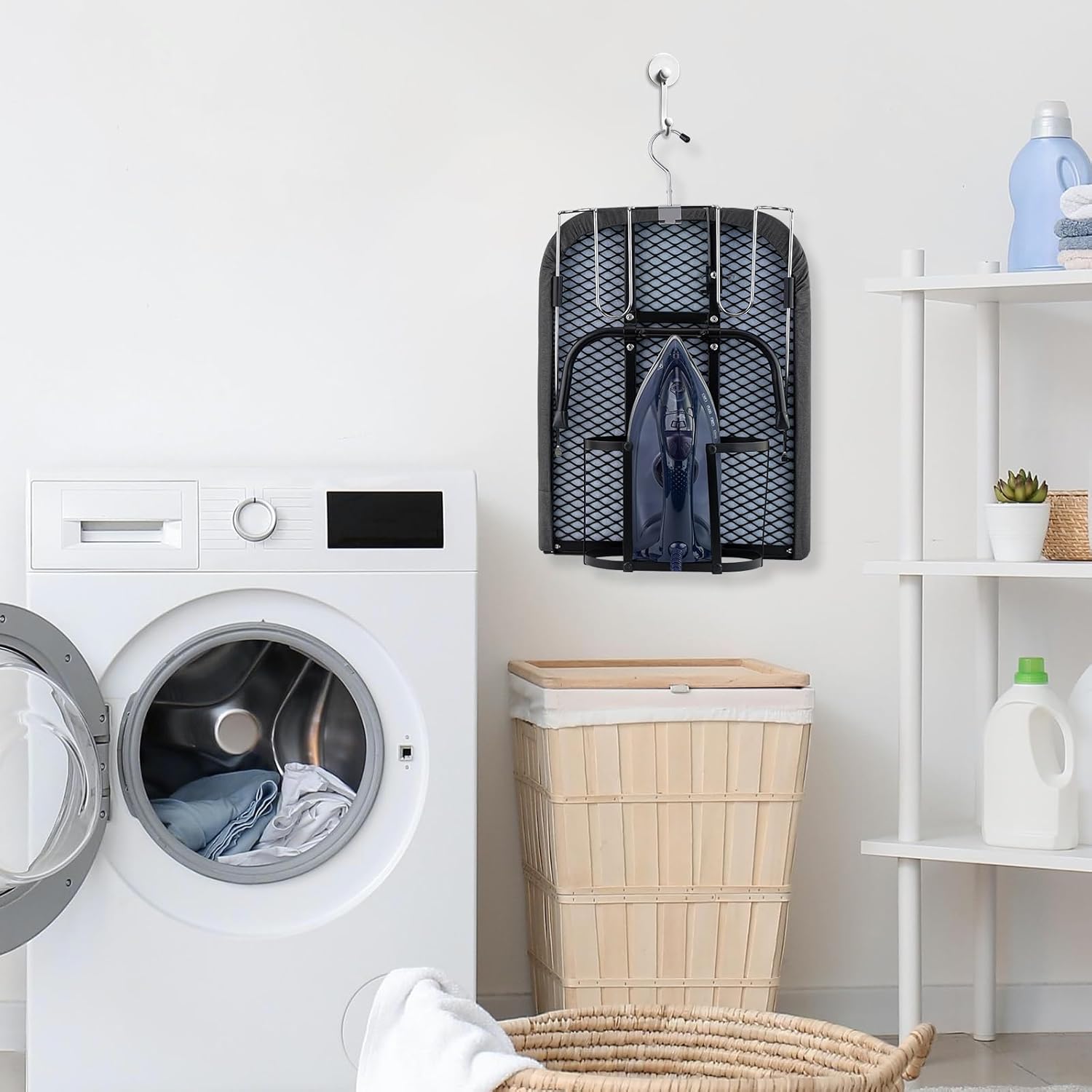 - ALL IN ONE STORAGE STABILITY- Iron and ironing board set never lose your iron again! When using a small ironing board, pulling out the iron holder can place the iron. Even if the iron is still warm after ironing, it can be placed directly in the storage basket. No more worries about storing irons