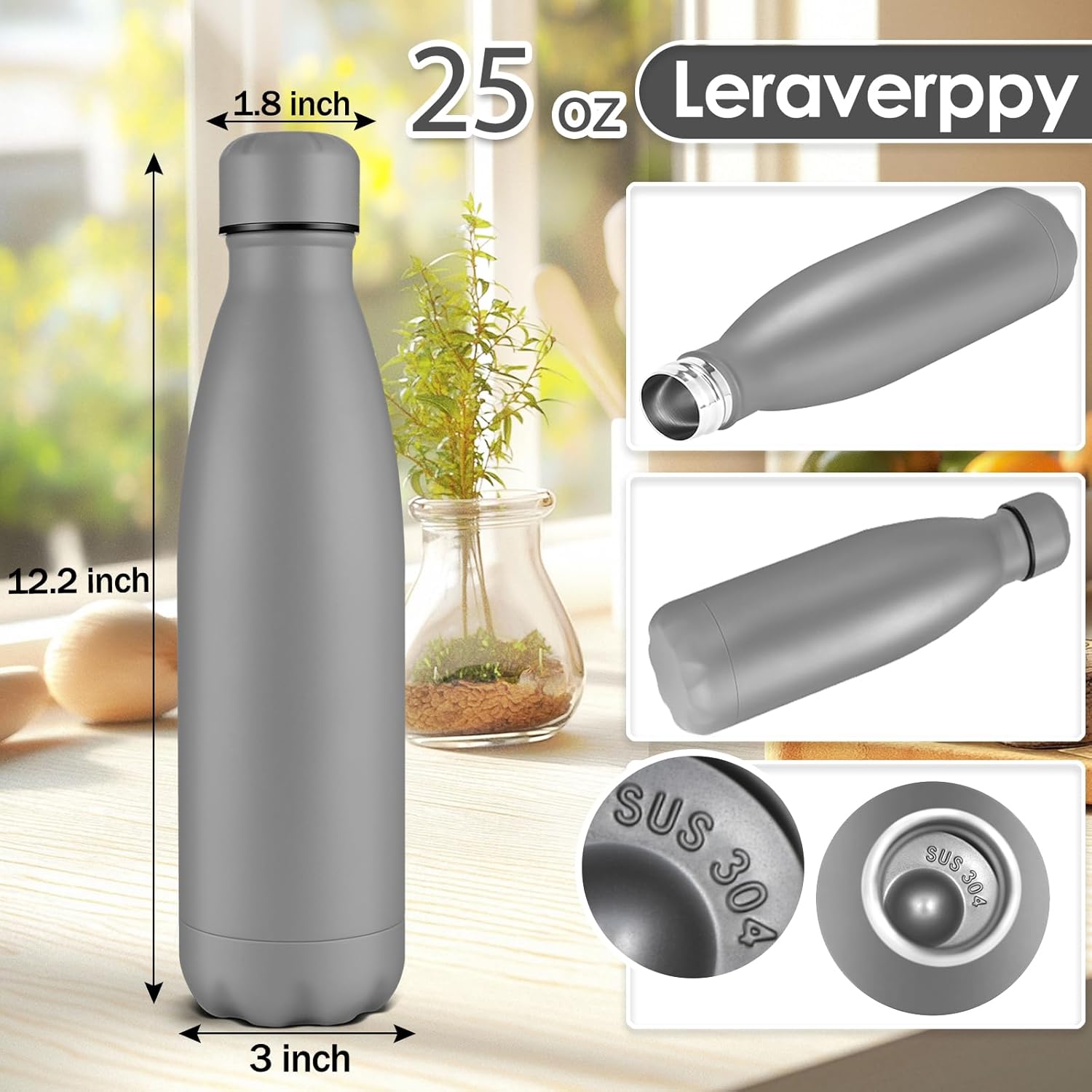 - 《Food-Grade 18/8 Stainless Steel Liner》Our water bottle is made of 18/8 food-grade known as 304 stainless steel.BPA Free,Non-toxic,No metallic taste,safe and healthy for all your water needs.Moms can trust our 304 stainless steel water bottles — designed to keep your little one’s drinks safe and healthy.Drink in the joy of every drop in your healthy life.