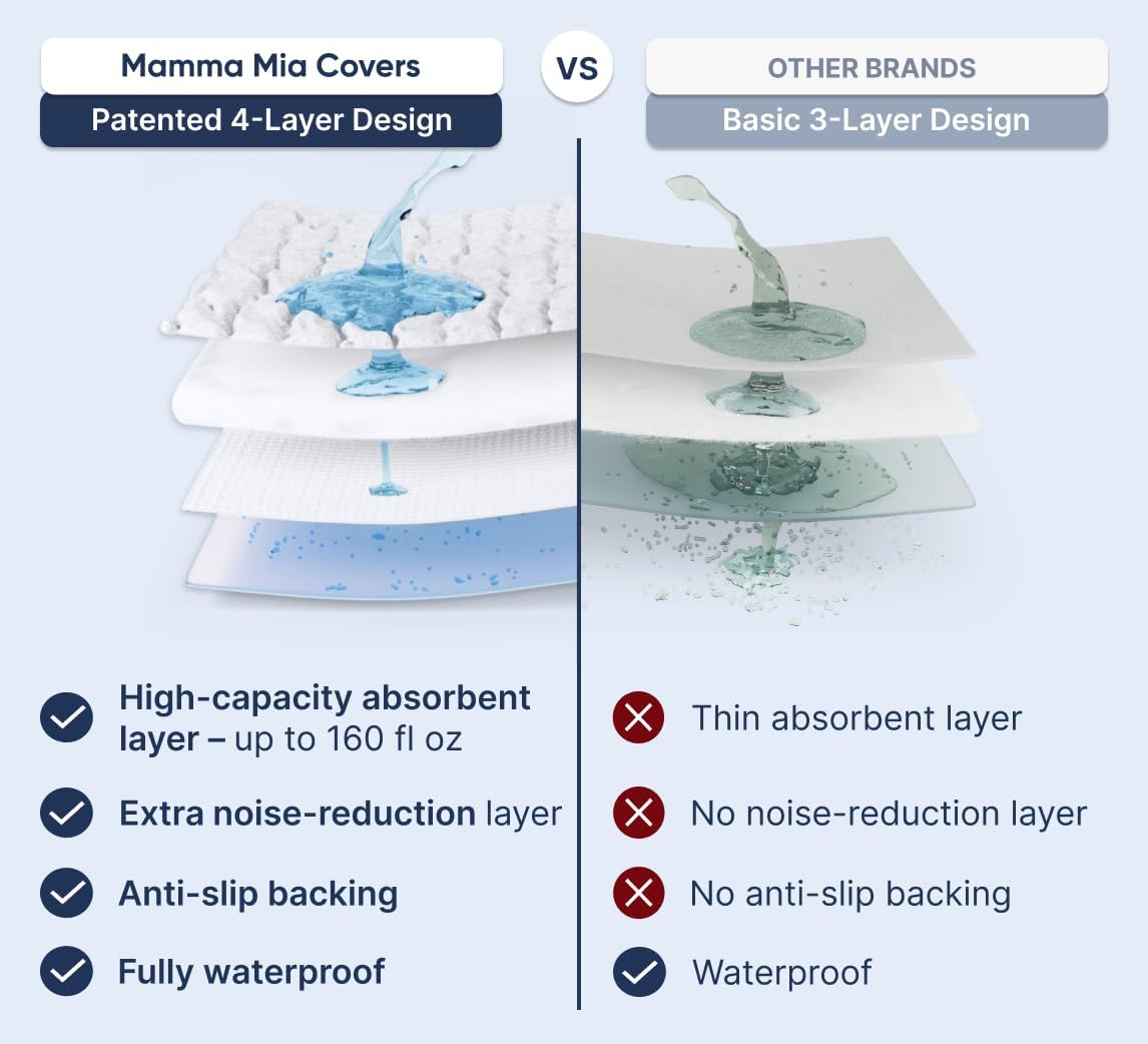 - SOFT & NOISELESS FABRIC: Ultra-soft and breathable, the surface helps regulate temperature and prevents overheating, creating a cool and comfortable layer beneath your sheets. Unlike noisy protectors that crinkle and disturb your sleep, ours has an extra noise-reducing layer for peaceful, uninterrupted nights.