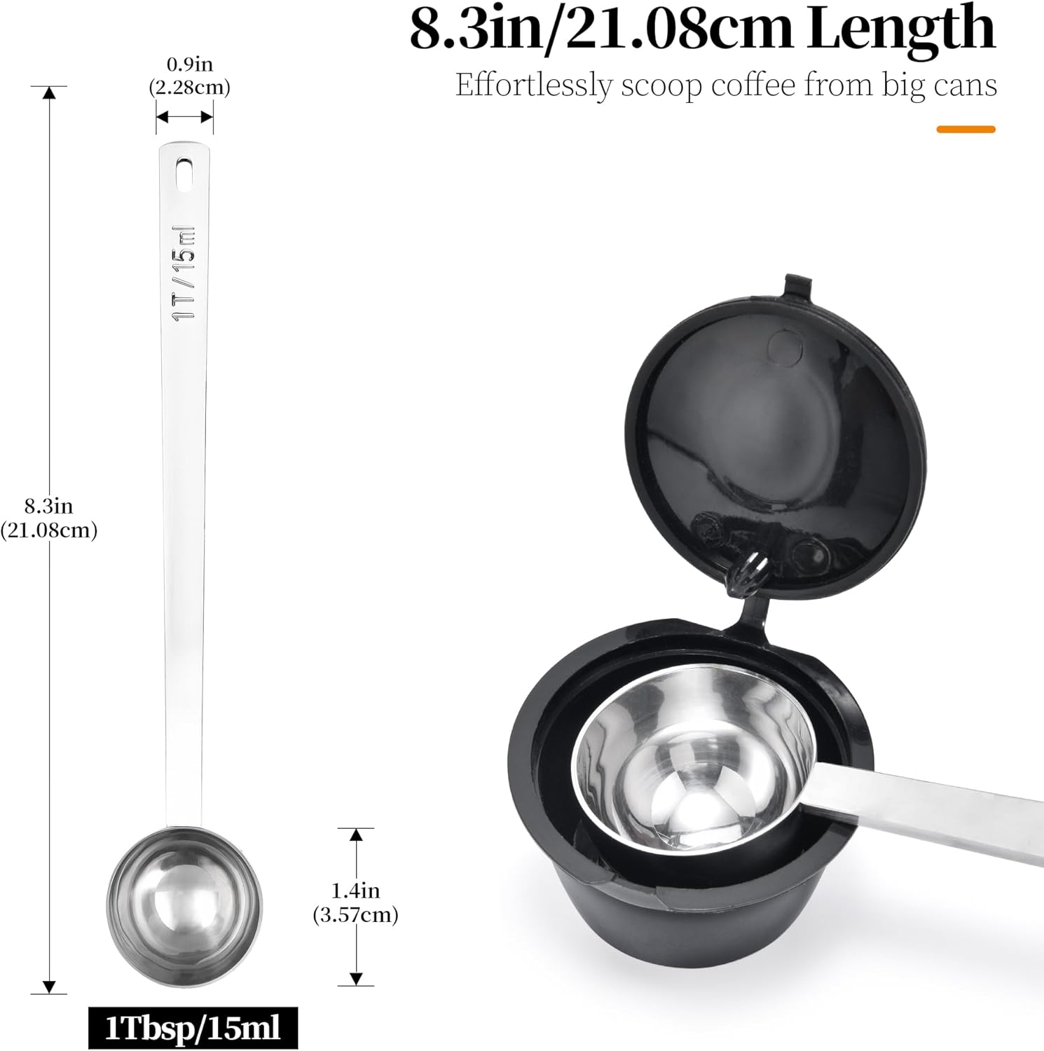 - [8.3-Inch Extra-Long Handle – Reach Deep, Stay Clean & Effortless] No more digging into coffee bags or spice jars with your hands! Our 8.3 inch long-handled coffee scoop is specially designed to reach the bottom of tall containers effortlessly – keeping your hands clean while you scoop. The ergonomic length of this coffee scoop gives you total control, while the sturdy stainless steel construction ensures it won't bend, even in dense grounds. No more wasted coffee, no more messy hands.