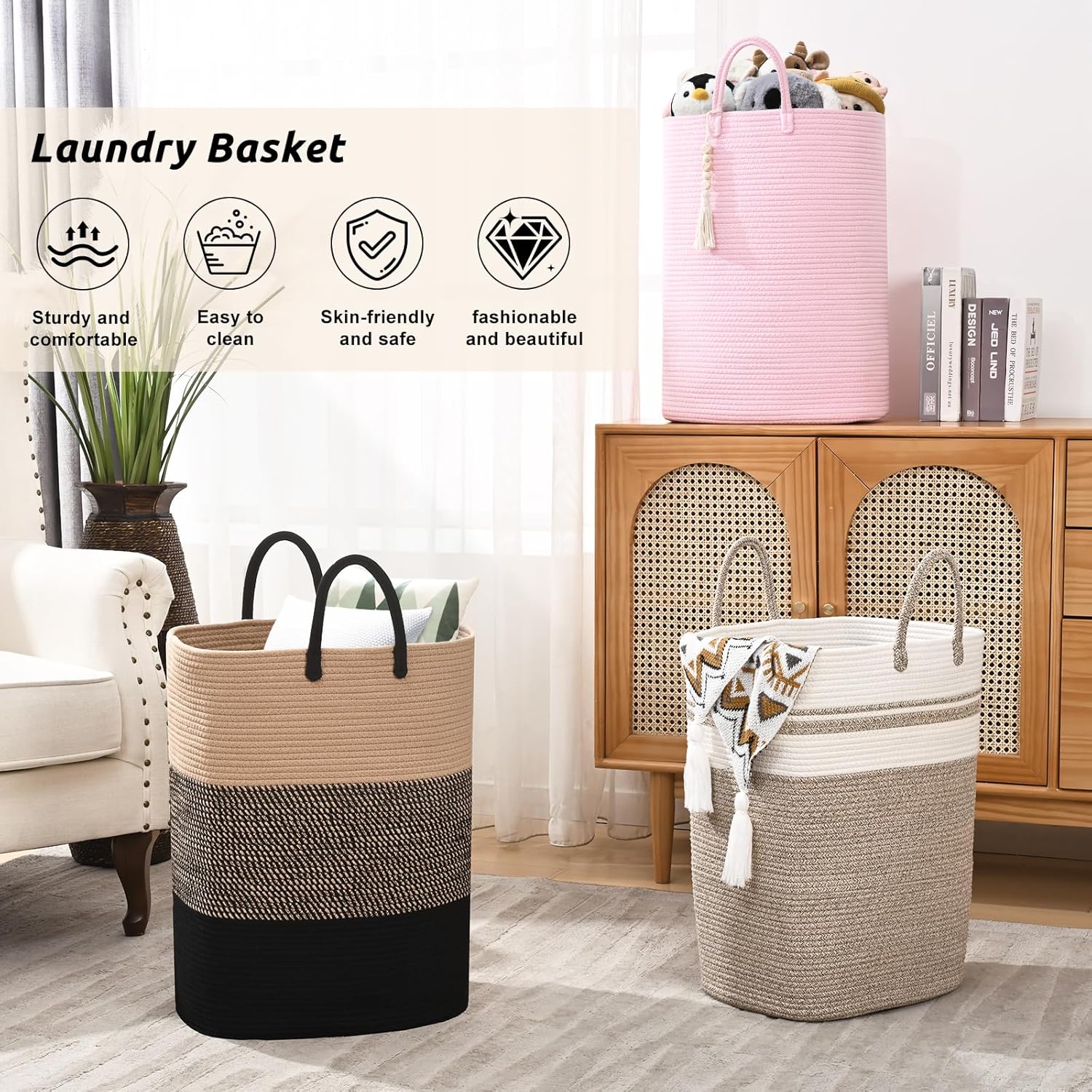 - π[DURABLE, BREATHABLE & SKIN - FRIENDLY COTTON]: Made of sturdy and odor-free rope cotton, woven laundry basket has a solid addition to any space. Tall laundry basket quite sturdy and spacious, capable of holding a good amount without losing its shape, which adds to its practicality.