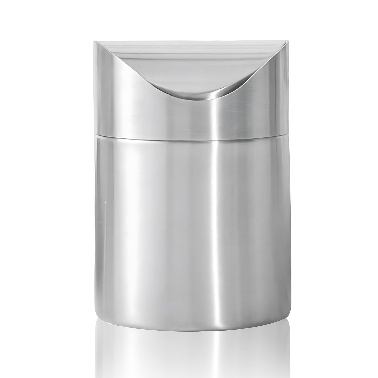 Mini Trash Can, Tiny Desktop Trash Bin with Swing Lid, Stainless Steel Bathroom Countertop Garbage Cans Kitchen Waste Bins with Trash Bag