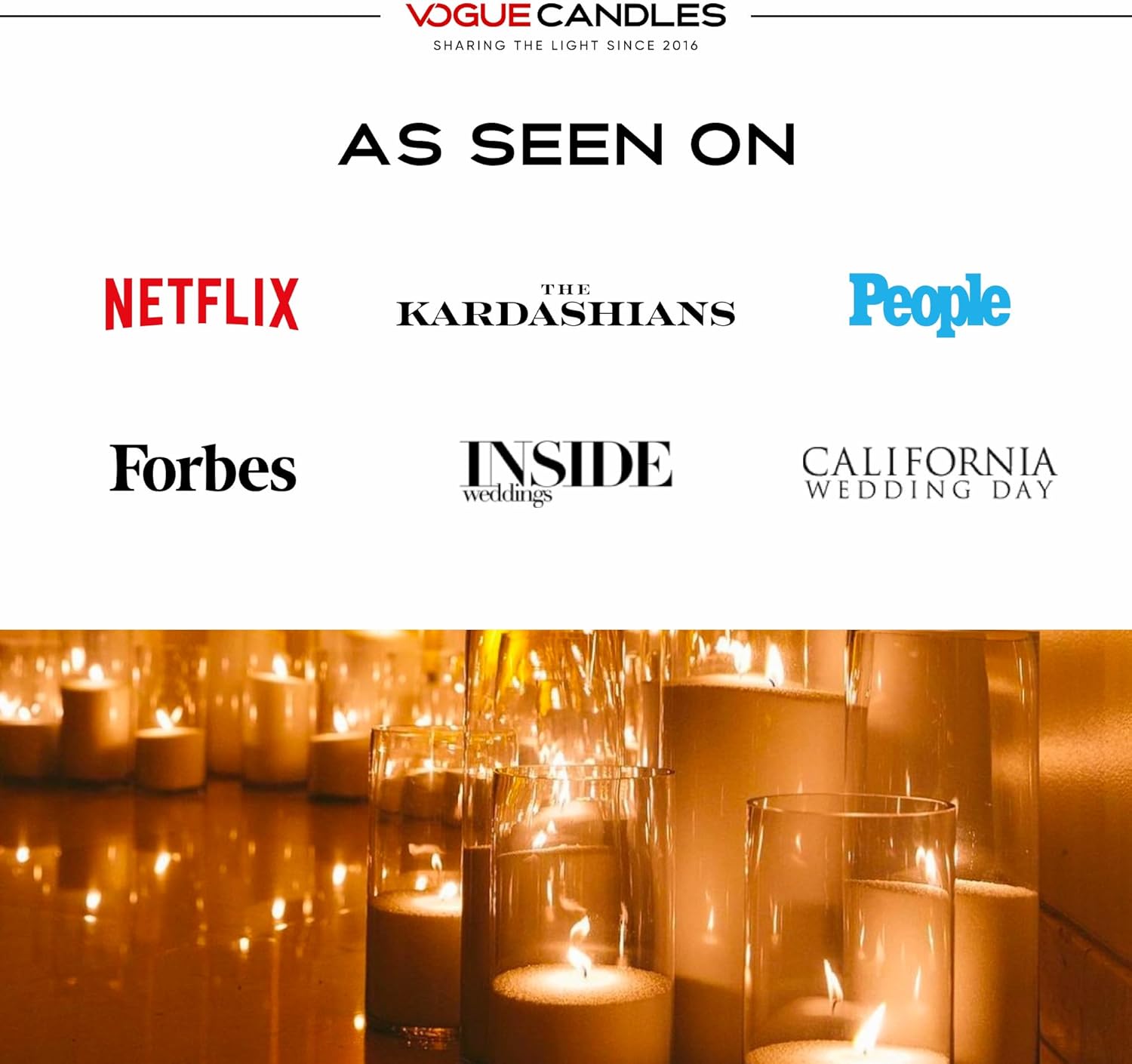 - Celebrity Favored Candle Experience, Now in Your Home: As seen at high-profile events and luxury venues, Vogue Candles made such an impression that guests kept asking to take them home. Now you can. Bring that same exclusive ambiance into your space, wherever you are, with a real flame that looks as elevated as it feels.