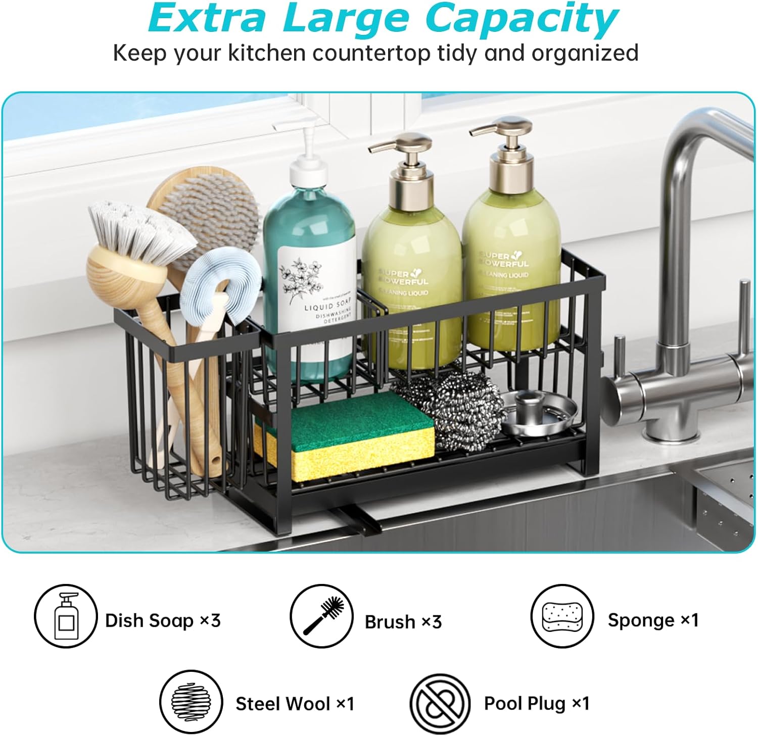 - Upgraded Double Capacity: Liuoud 2 tier sink rack with a brush holder can hold various kitchen cleaning supplies such as hand sanitizers, sponges, dish brushes, sink stoppers, wire balls, etc.It has a large capacity but occupies a very small space, just 9.5inch×4inch which is especially suitable for limited kitchen, keeping the sink countertop clean and tidy