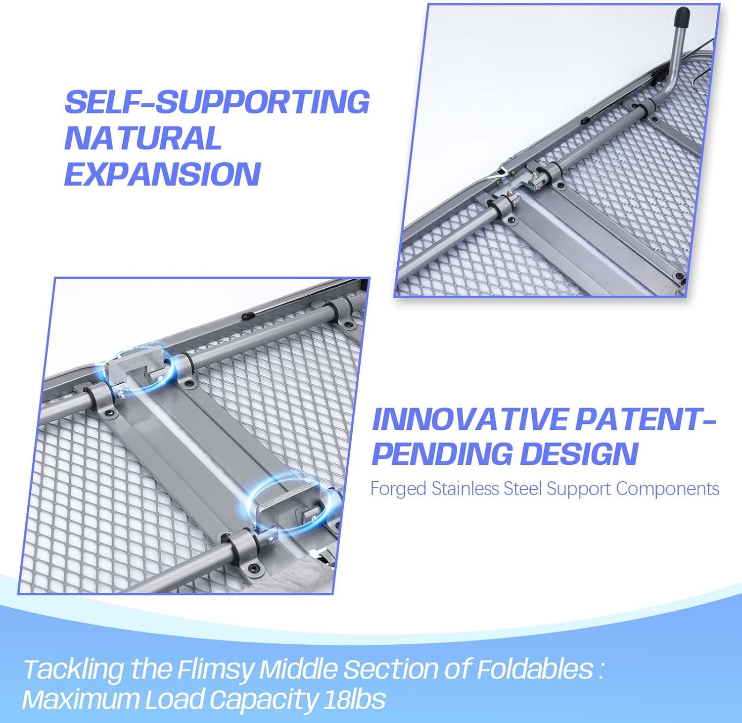 - 【Forged Stainless Steel Supports】The table top ironing board made reinforced stainless steel frame provides unmatched stability (18 lbs max load) and durability. At 5.2 lbs (35% heavier than similar products), it’s built to last.