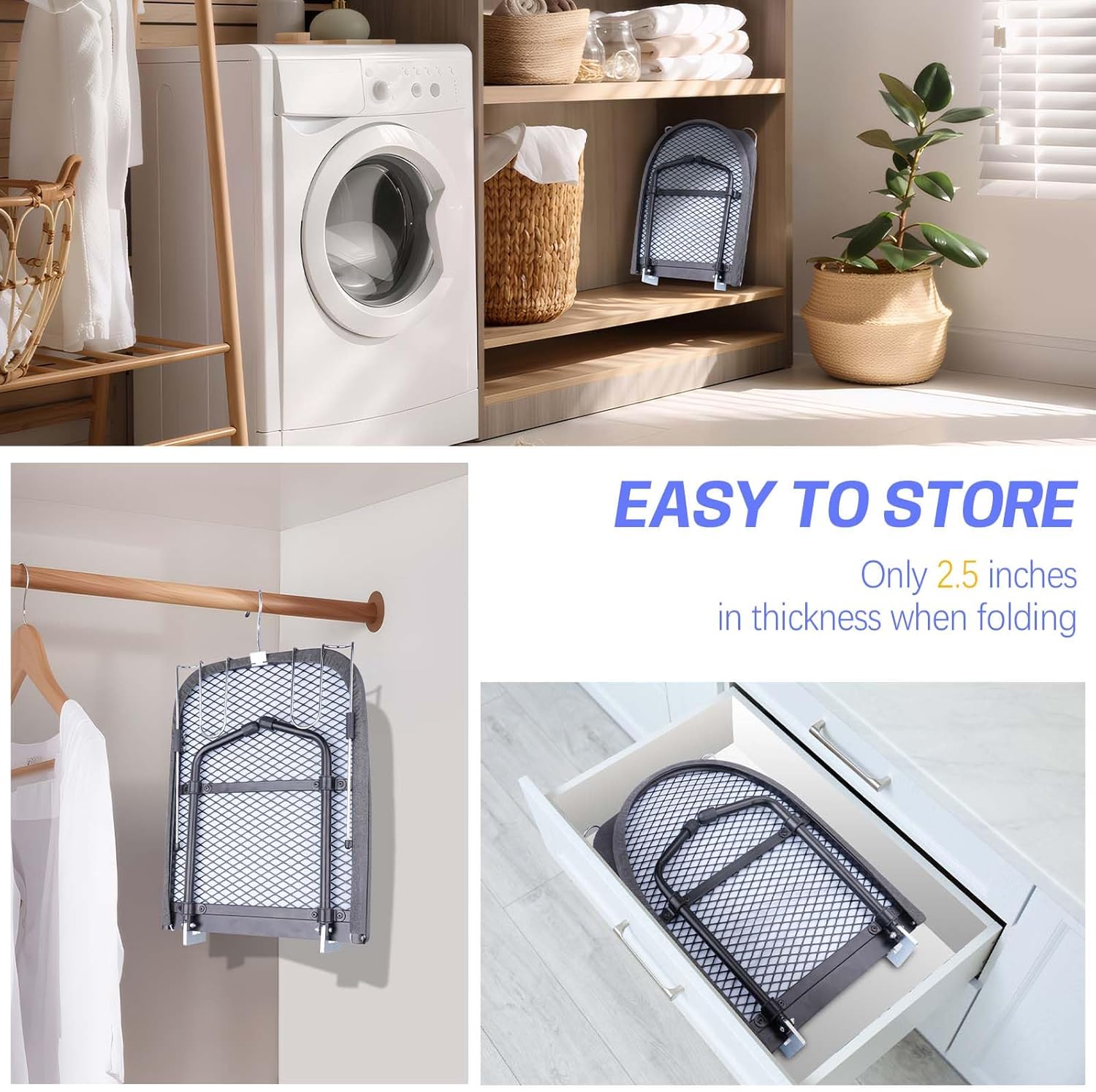 - 【Compact & Portable Design】Our small ironing board tabletop is perfect for small spaces, measuring 32×12×6 inches when open and folding down to just 16×12×2 inches. The included iron holder adds convenience, making it ideal for apartments, dorms, or travel.