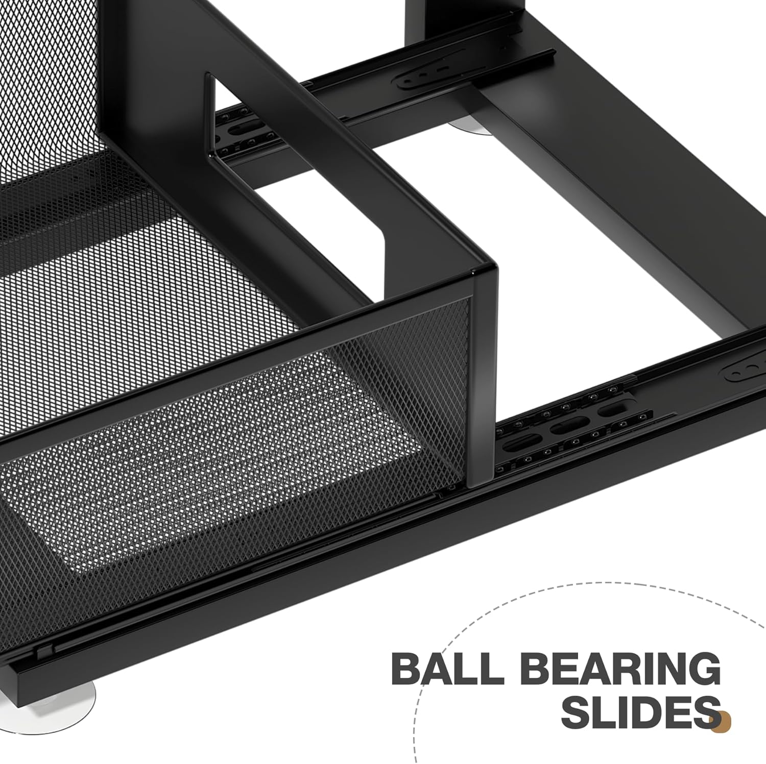 1 Pack 15.74IN-Depth Under Sink Organizer With Next-Gen Ball-Bearing Slides,2-Tier Pull Out Cabinet Storage,Height Adjustable Drawer Shelf for Bathroom,Kitchen,Laundry,Cabinet,Pantry-Black