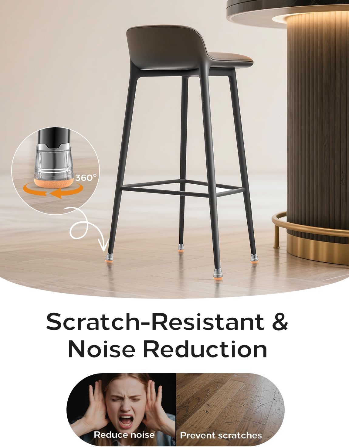 - Protect Floors & Silent Gliding- Easily attach these chair leg covers to kitchen, dining, living room, or metal chair legs. Shield your hardwood, laminate, tile, vinyl, or luxury vinyl plank floors from unsightly scratches, gouges, and scrapes. Plus, enjoy quiet gliding! Eliminate annoying scraping and screeching noises when moving chairs, creating a peaceful home or office environment.
