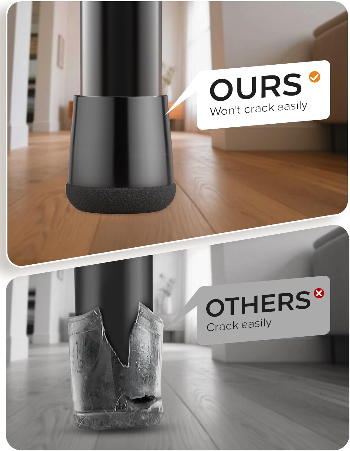 - 360Β° Felt-Bottom floor protectors- 360 Β° fully wrapped felt design. Made from high-density industrial felt and flexible silicone to withstand daily wear, heavy chairs, and frequent movement without tearing or flattening, ensuring long-lasting floor protection.