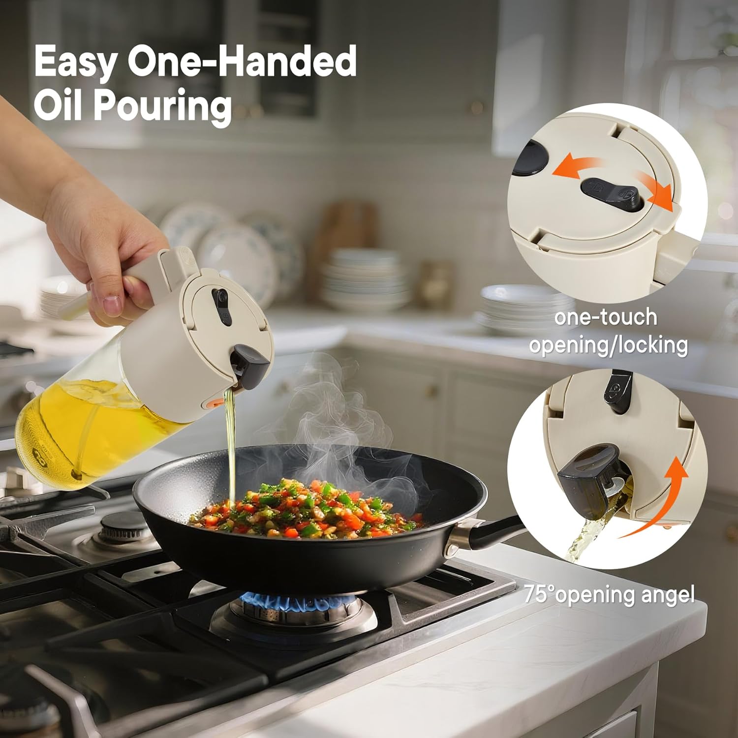 Oil Sprayer For Cooking with Leak-Proof Seal, One Touch Mist - 600ML Kitchen Oil Dispenser Bottle for Air Fryer, BBQ, Baking, Salad(White)