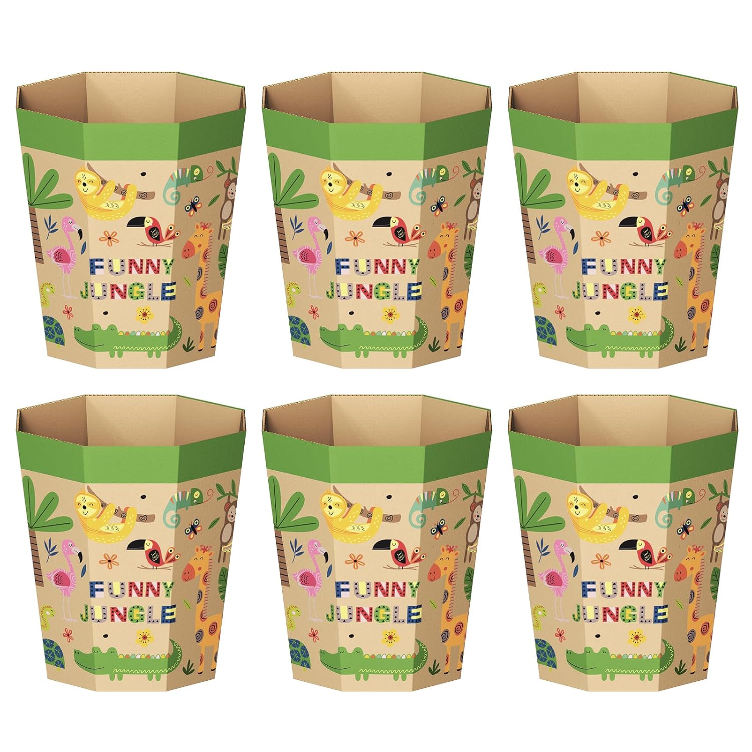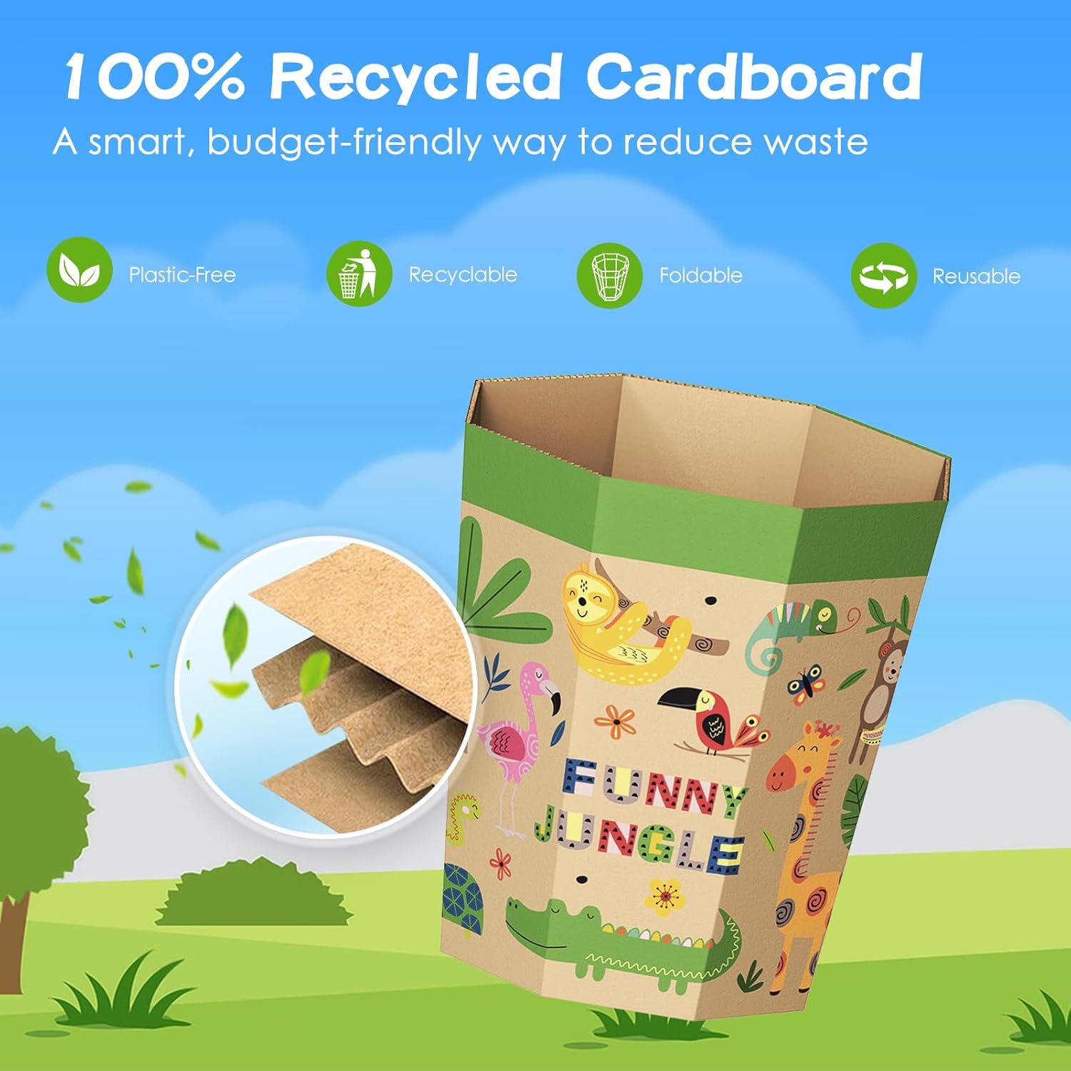 6-Pack Cardboard Trash Can – Foldable, Recyclable, Plastic-Free & Reusable Small Waste Paper Basket for Kids - Garbage Bin Perfect for Bedrooms, Playrooms, Children's Room & Outdoor (2.1 Gallon)