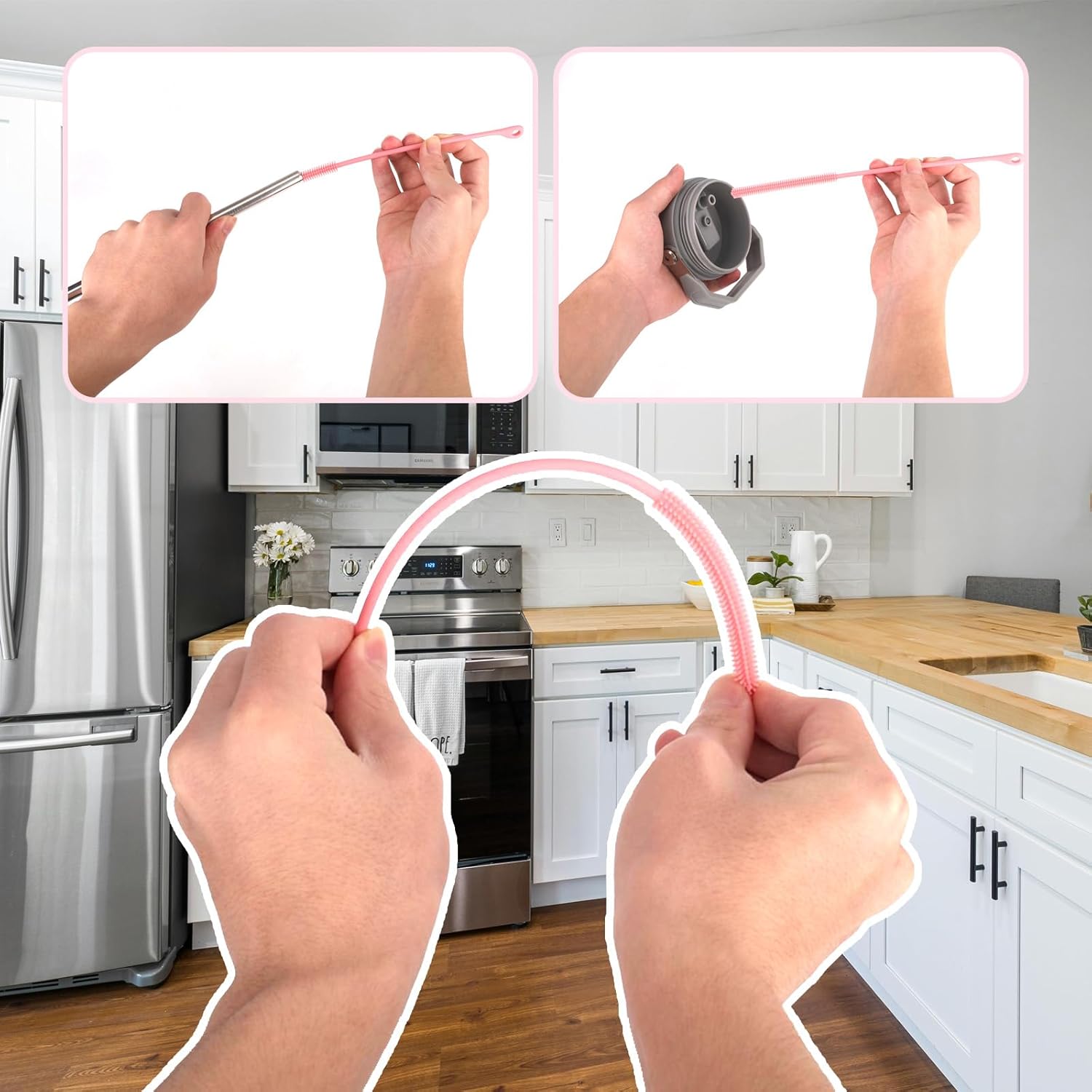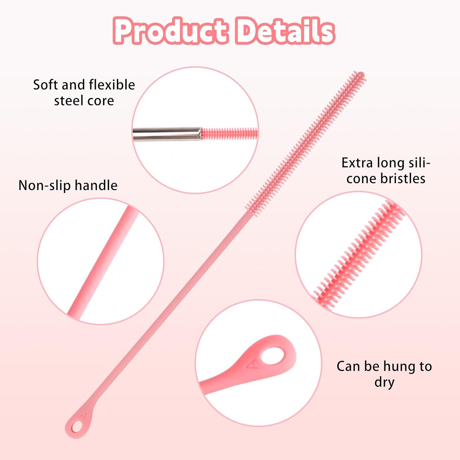 - Special Design: This silicone straw cleaner features long, dense silicone bristles that gently but effectively remove stubborn residues like milk or tea stains without scratching. The non-slip handle ensures a secure grip, and the convenient hanging hole at the end allows for easy drying and storage.