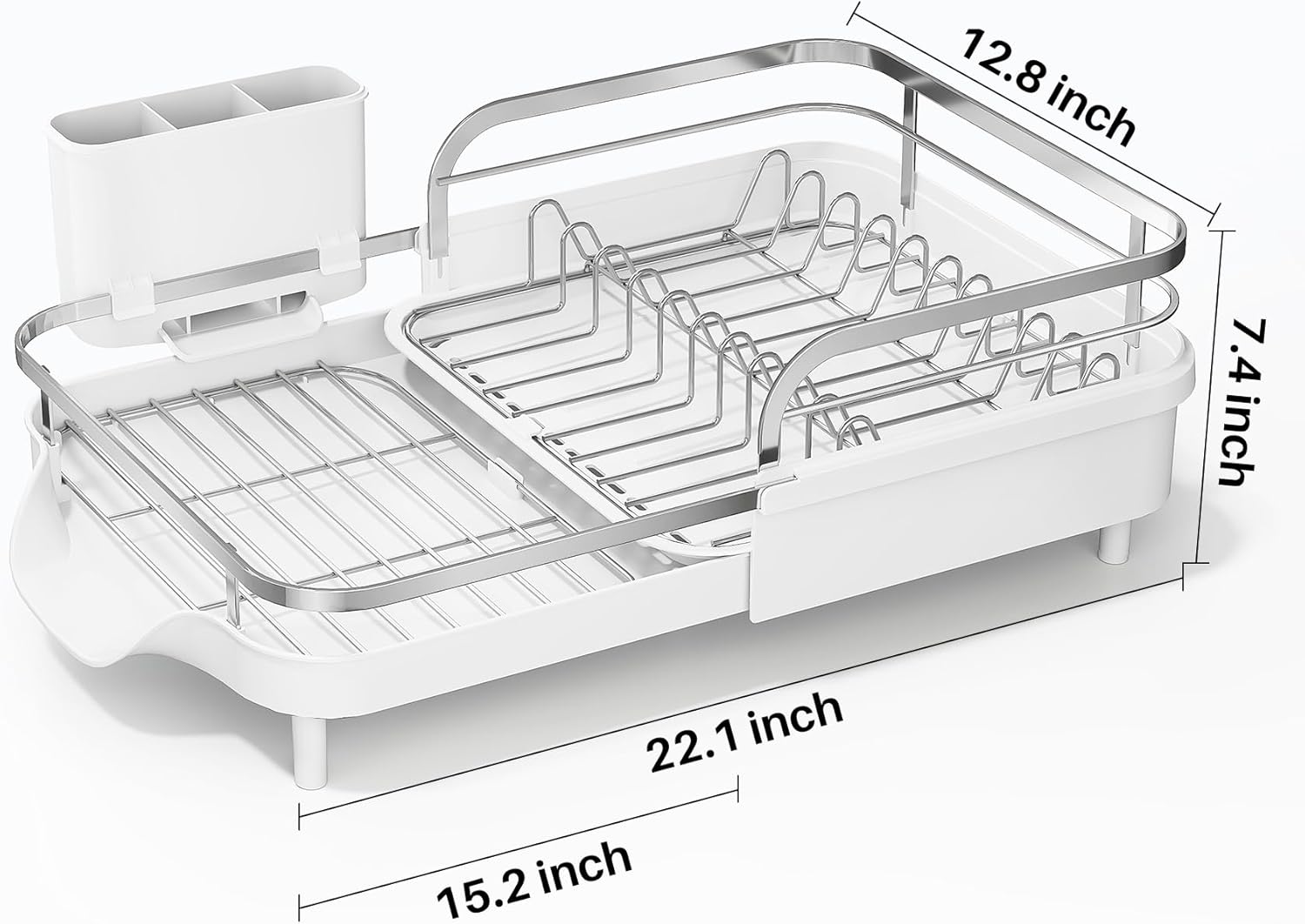 - Flexible Fit for Kitchen Counter: Whether you're working with limited space or handling extra dishes after a meal, this extendable dish rack easily adjusts from 15.3" to 22.2" to meet your needs—keeping your kitchen gadgets organized and within reach
