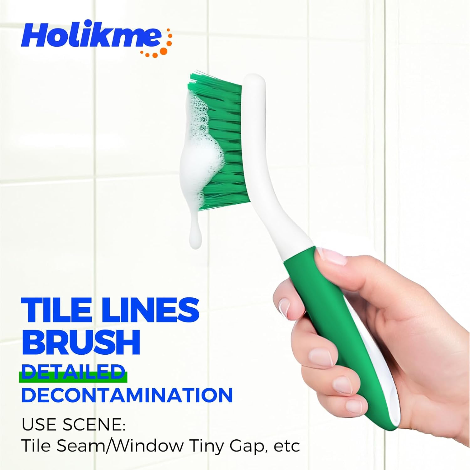 Holikme Cleaning Brush Set for Household Use, Scrub Brush, Kitchen Brush, Tile Lines Brush for Bathroom, Floor, Tub, Shower and Kitchen Surface (Green)