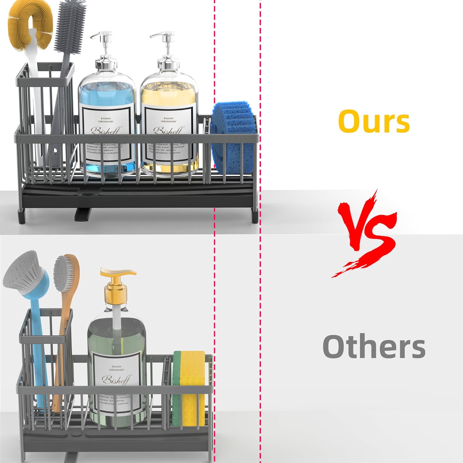 - ăREASONABLE PARTITION DESIGNăThe sponge holder for kitchen sink adopts an ergonomic partition design, which can have 3 independent storage spaces, and different items are placed in different areas. Make full use of every inch of space to make your kitchen look cleaner.