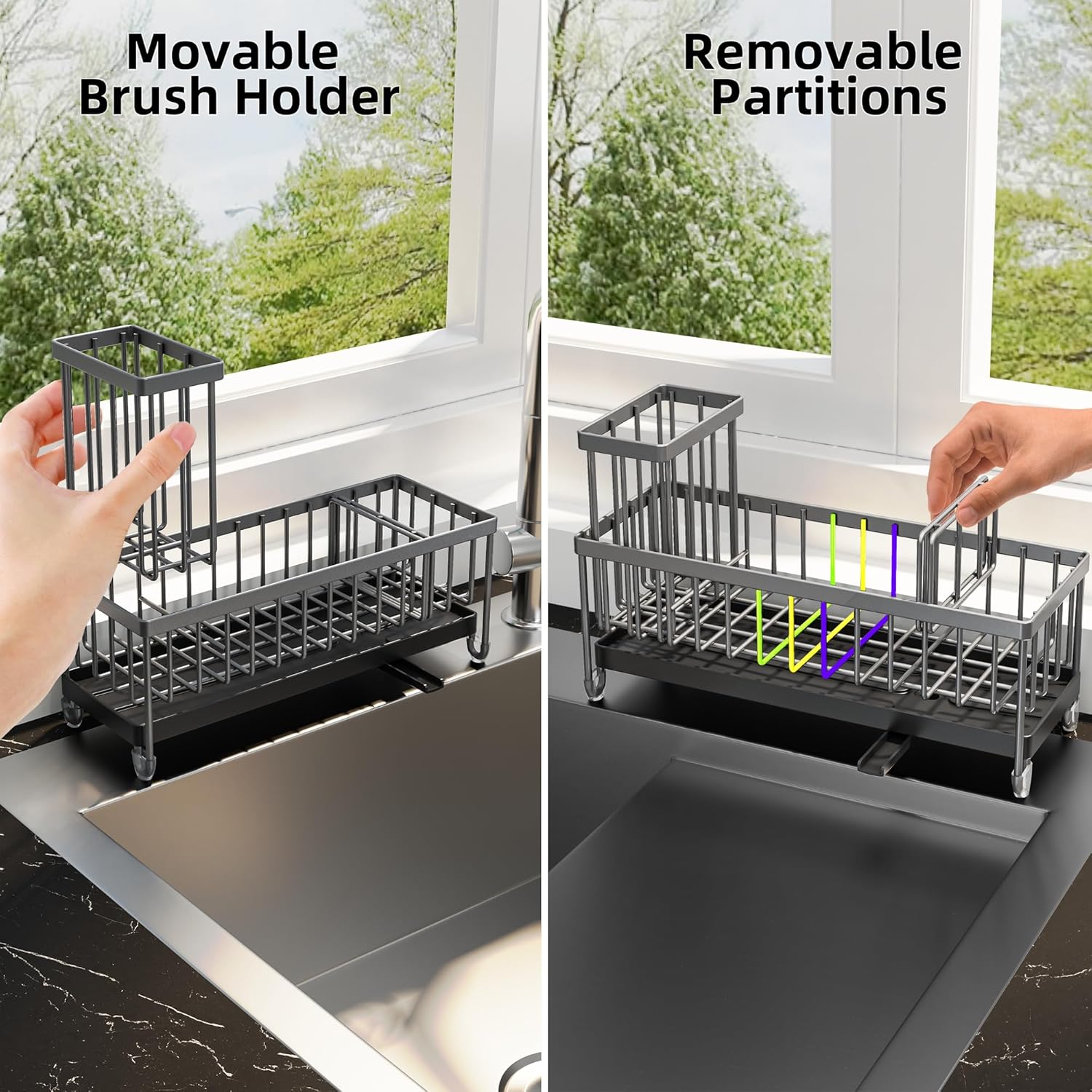 - ăBRUSH STORAGE RACKăThe higher brush storage rack allows your brushes to be better stored without falling. The kitchen sink caddy can be used after receiving it, no installation is required, and it is widely used on sink countertops or bathrooms. It is a satisfying gift.
