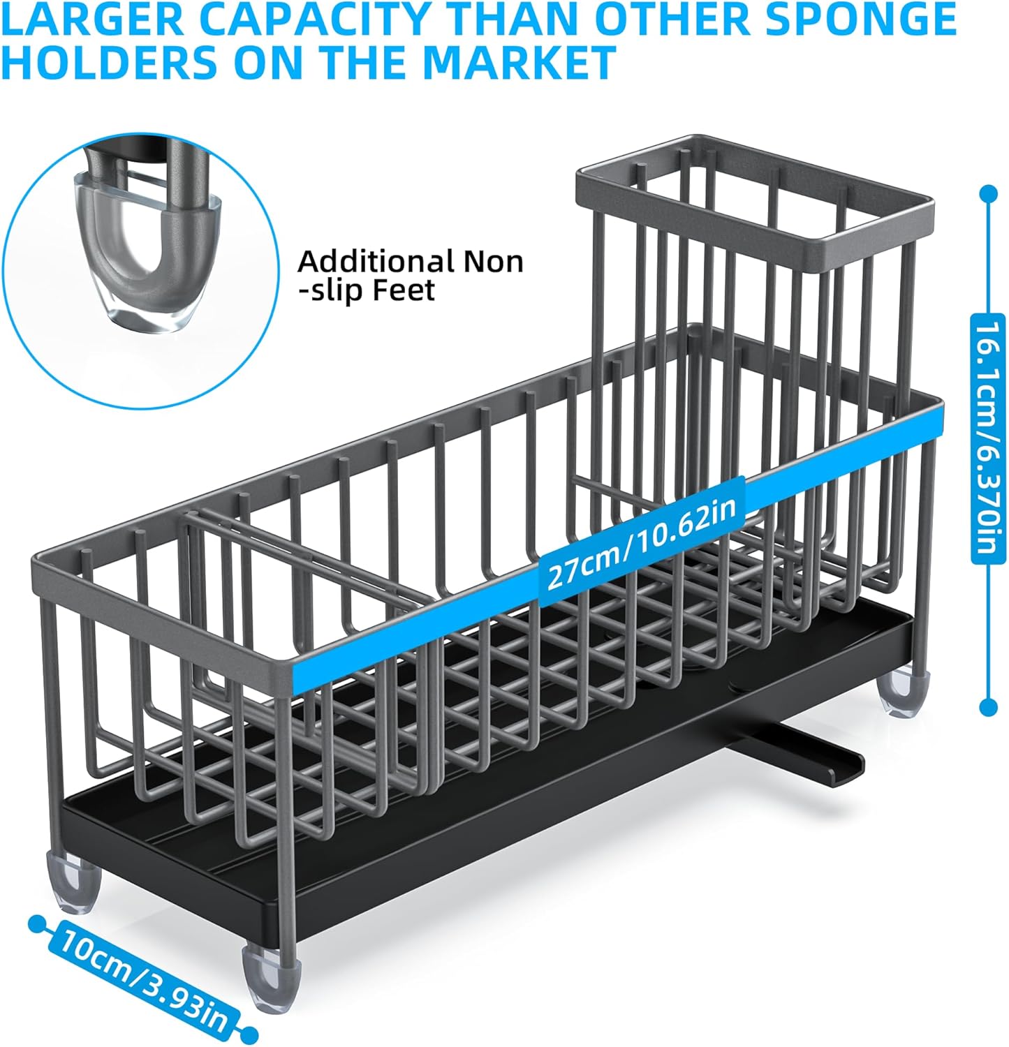 Moforoco Extra Large Sponge Holder for Kitchen Sink Organizer Caddy, Dish Brush Scrubber Holder,Stainless Steel Sink Box Utensil Holder,Soap Dispenser Set Tray Counter Accessories(Grey)