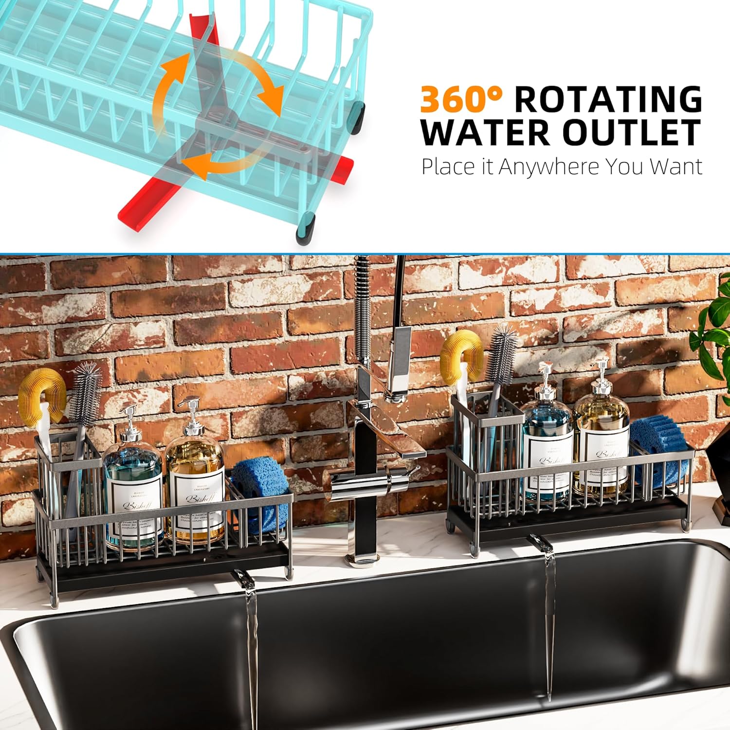- ăROTATABLE NOZZLEăThis kitchen sink caddy is equipped with a rotatable nozzle that can be rotated in three directions so that the water in the sponge can flow to the sink. No water will remain on the countertop, and you don't need to pull out the drip tray frequently for cleaning, which saves cleaning time.