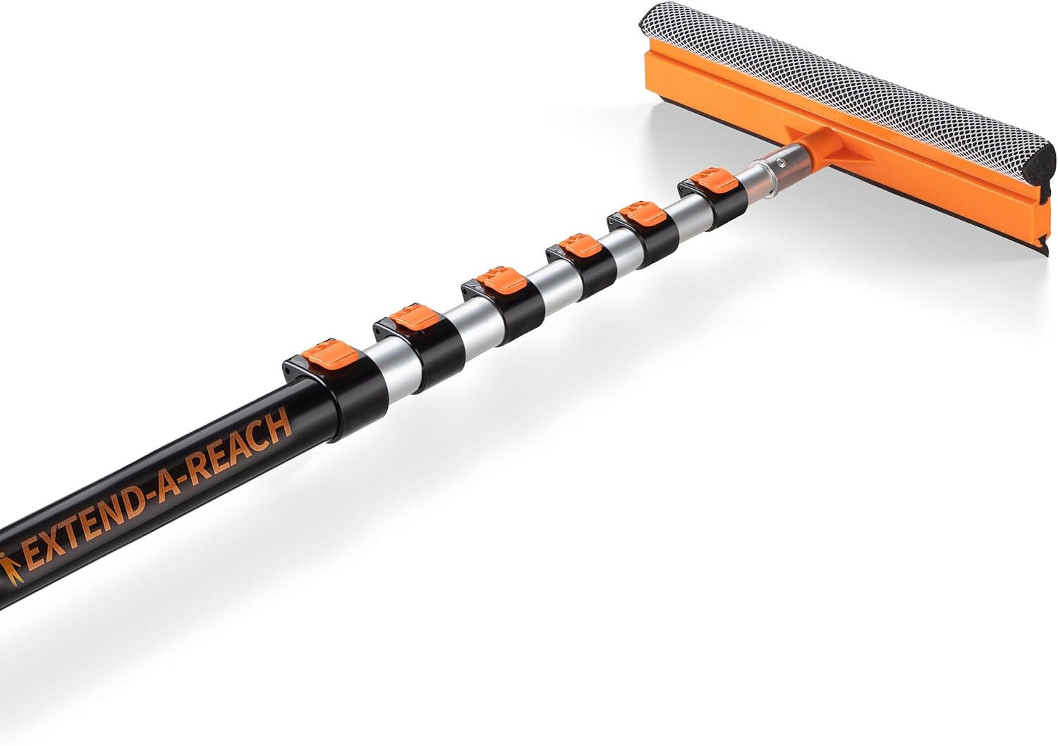 - STAY OFF THE LADDER. STAY SAFE. GET THE JOB DONE. » Using a shaky ladder is tiring at best and dangerous at worst. Using the EXTEND-A-REACH telescopic extension pole and window cleaning squeegee will reduce the chance of a bad fall, so you can efficiently complete your chores while your feet are planted firmly on the floor.
