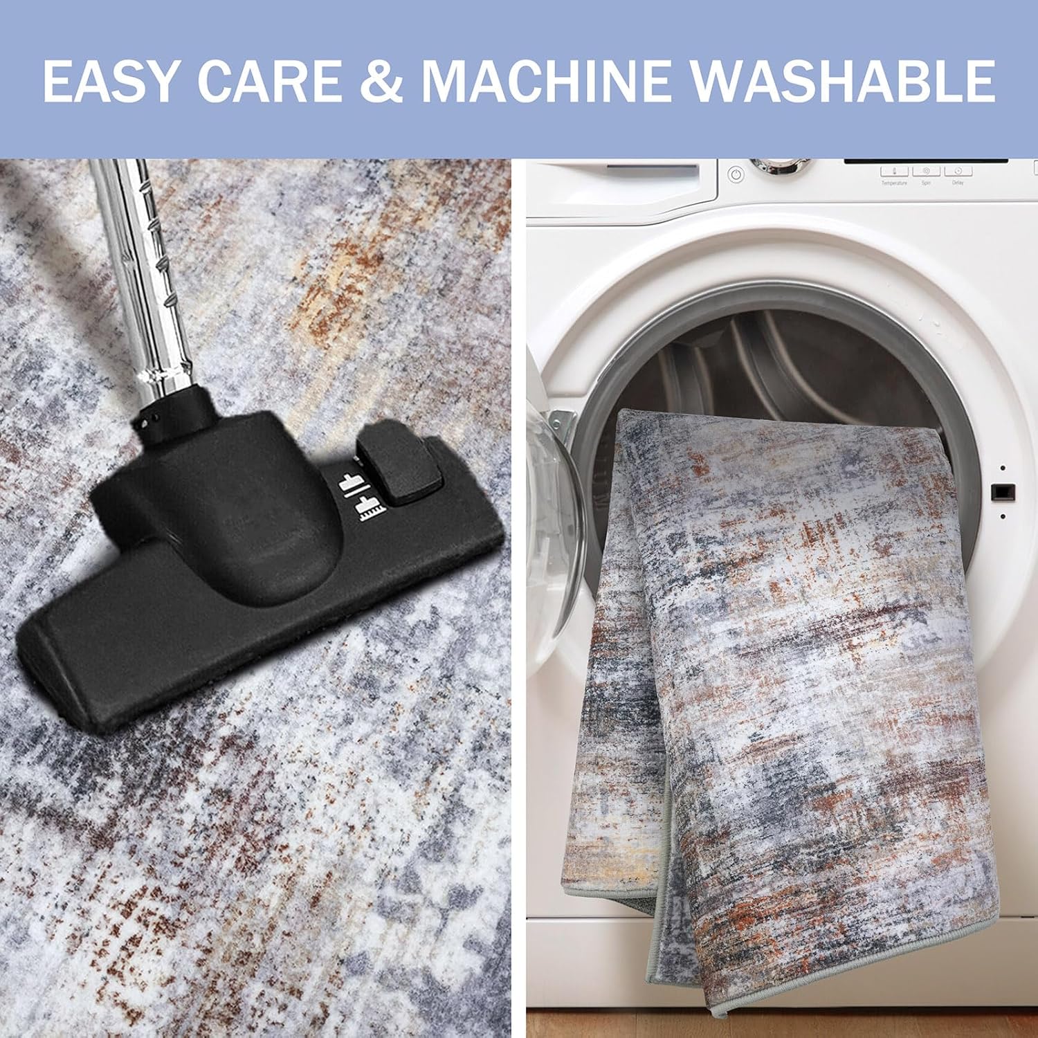 - Machine Washable: This circle rug is machine washable for easy maintenance, keeping it fresh and vibrant without the need for manual cleaning. Noted: When vacuuming, use a low setting or a robotic vacuum to prevent shifting or bunching