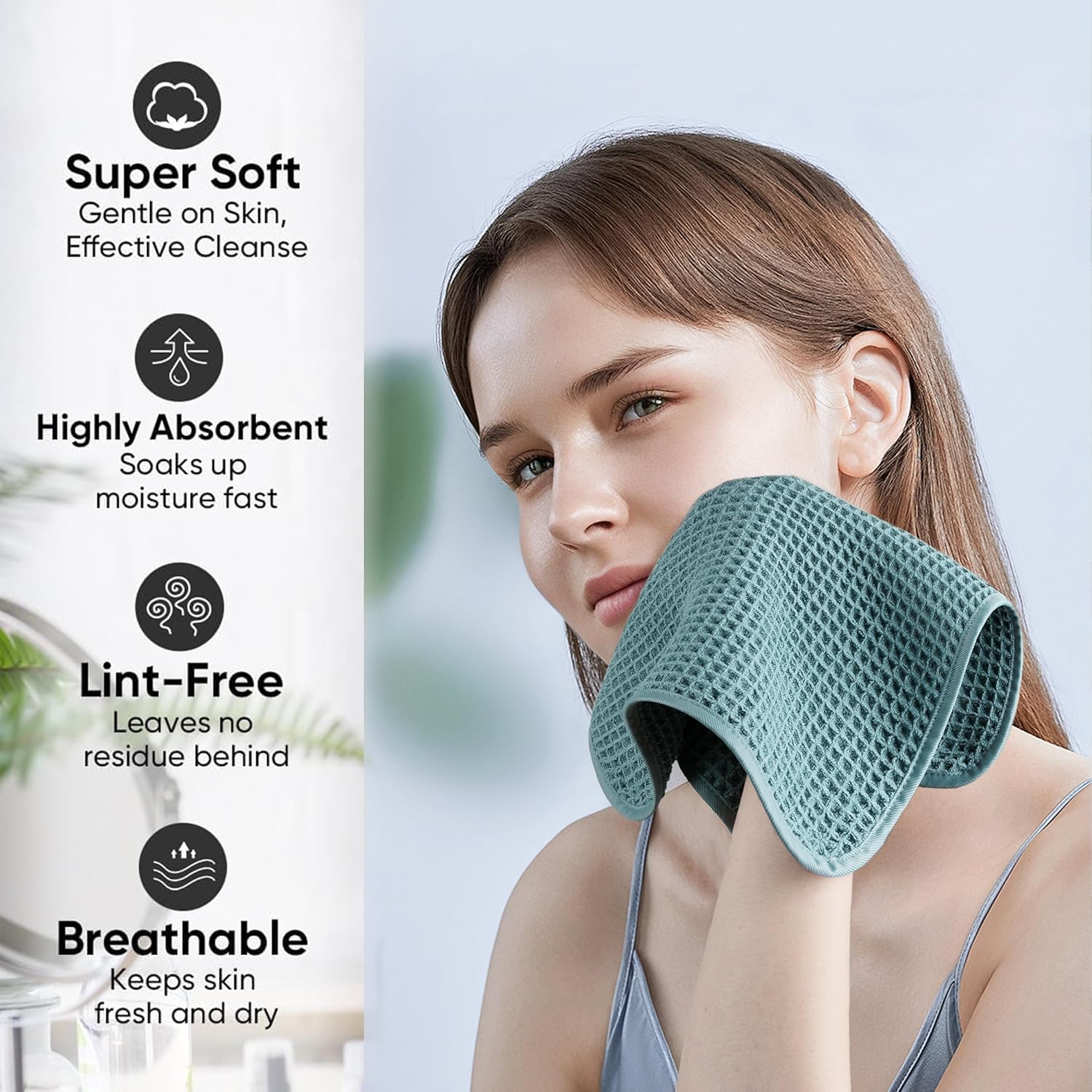 Microfiber Waffle Face Towels, 2 Pieces, Soft, Absorbent, Fast Drying, Lint Free (Green)