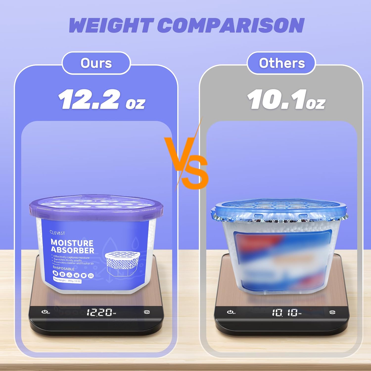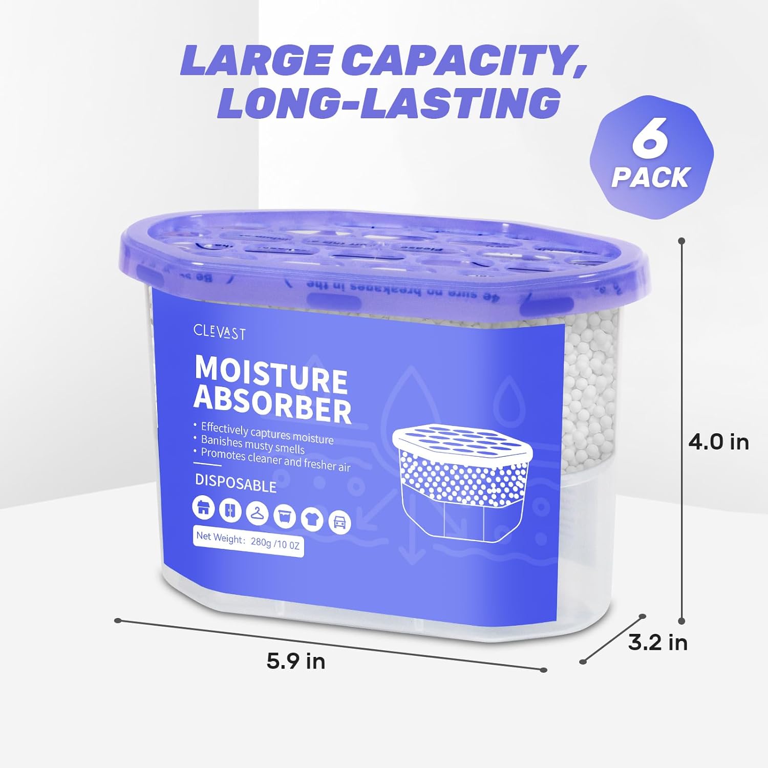 - VISIBLE DEHUMIDIFYING PROCESS: The CLEVAST absorber buckets absorb excess moisture from the air and collect it in the storage area, functioning like a small dehumidifier. The amount of water accumulated through the dehumidification process can be monitored at any time. With a large capacity of 280g per box, it lasts longer. (IF YOU NEED MORE POWERFUL DEHUMIDIFICATION, YOU CAN PEEL OFF THE WHITE PERMEABLE PAPER).