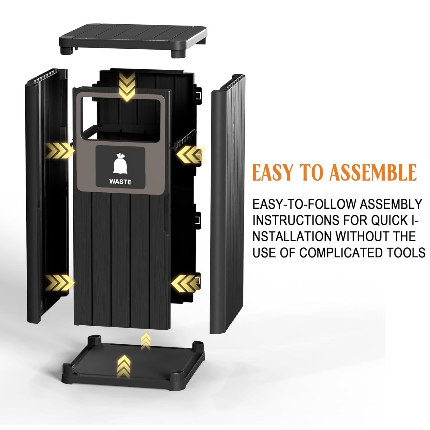 Outdoor Single Barrel Trash Can,Waterproof Resin Garbage Can with Garbage Labels,Durable Waste Bin for Porch, Backyard,Kitchen,for 30 to 39 Gallon Trash Bags