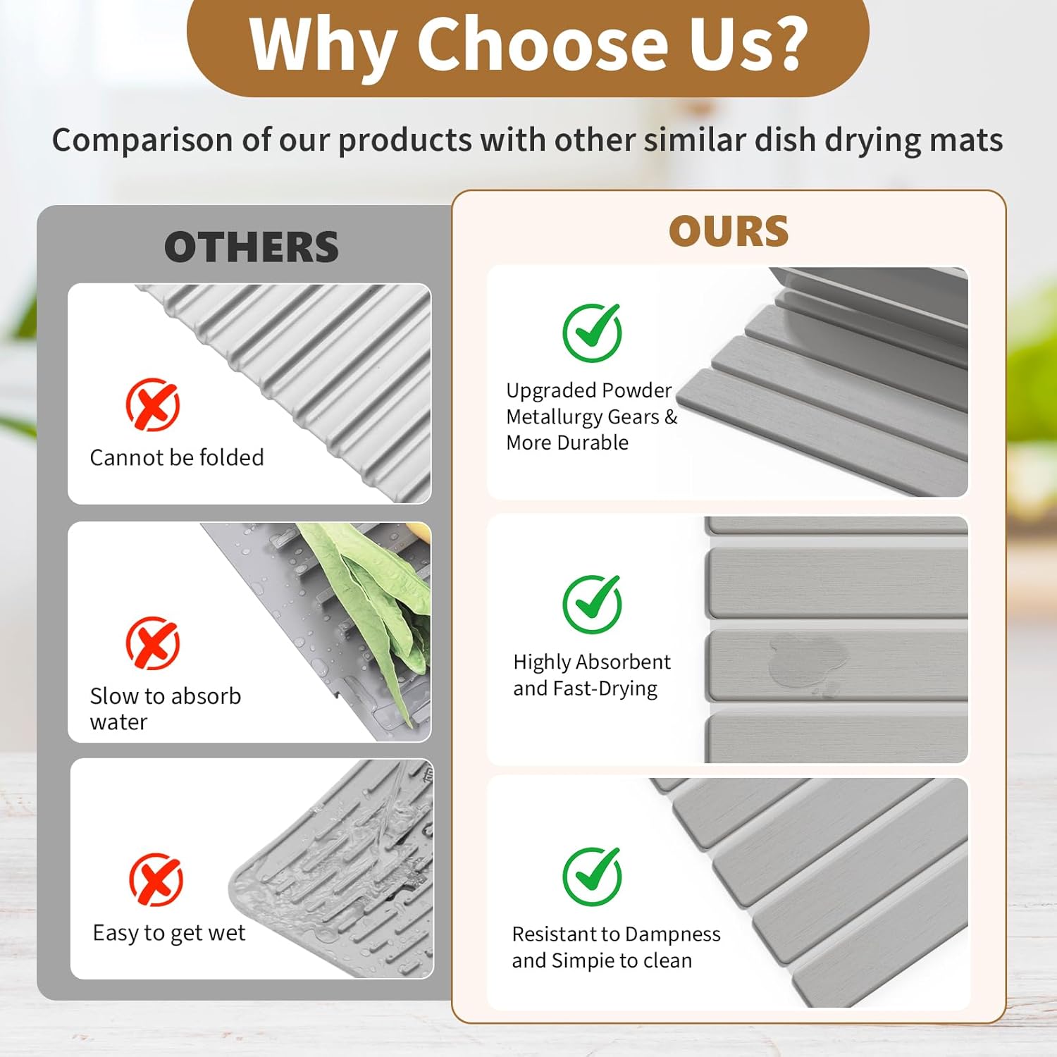 - Super Absorbent & Quick Dry:Our premium diatomite dish mat is the perfect quick drying stone mat that absorbs spills instantly and dries fast, keeping your countertop dry, clean, and free from moisture buildup. No more soggy mess—just a sleek, dry surface in minutes with this naturally efficient drying mat.