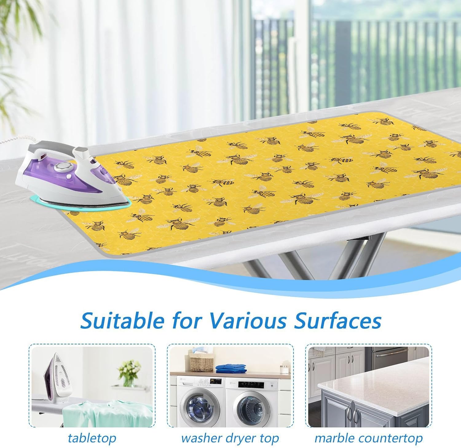 Yellow Bees Honey 01 Ironing Mat for Table top Portable Ironing Pad Blanket for Washer Dryer Countertop Travel