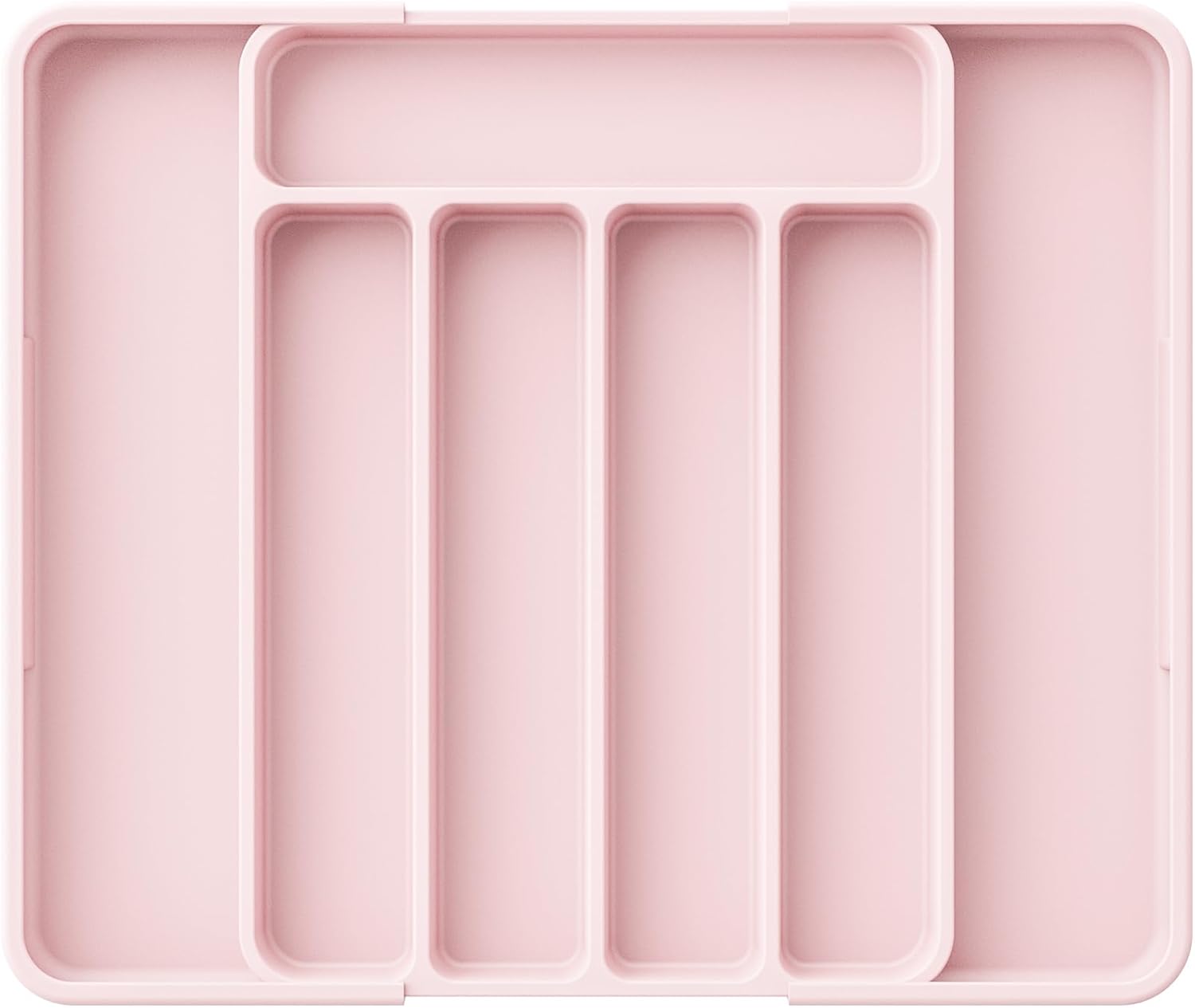 Kitsure Cutlery Drawer Organiser for Kitchen - Adjustable Cutlery Tray for Effortless Utensil Sorting, Versatile Kitchen Storage & Organisation Solution, 12.13" x 1.54" x 8.07"~13.90", Pink