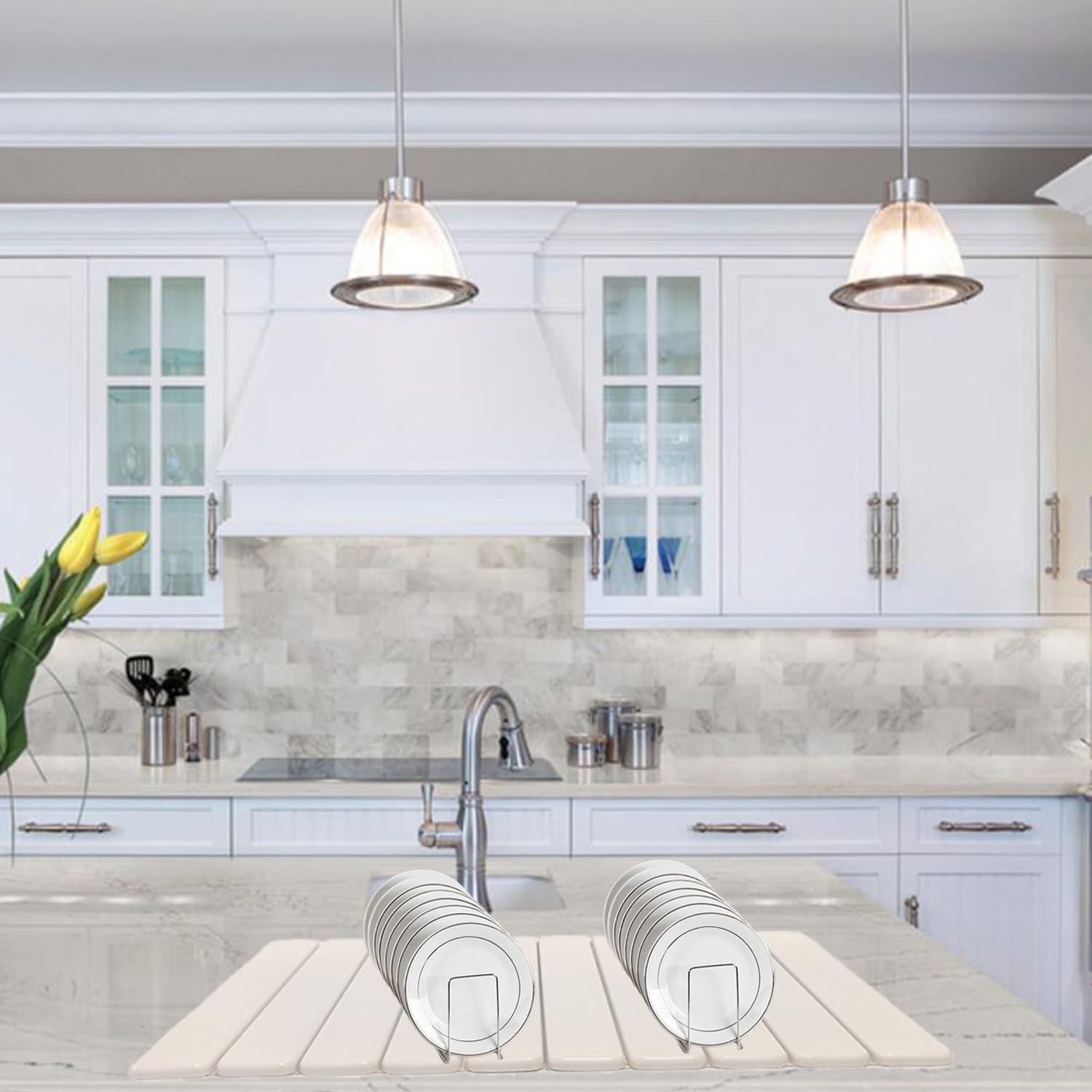 - Multi-purpose:Large drying mat for kitchen counter, not only can be used for drying plates, cups, knives and forks and other utensils in the kitchen, but also one of the choices for insulated mats, plant trays, pet feeding mats, and outdoor mats for the porch. The simplicity of the dish mat drying kitchen mat makes your countertops look more advanced.